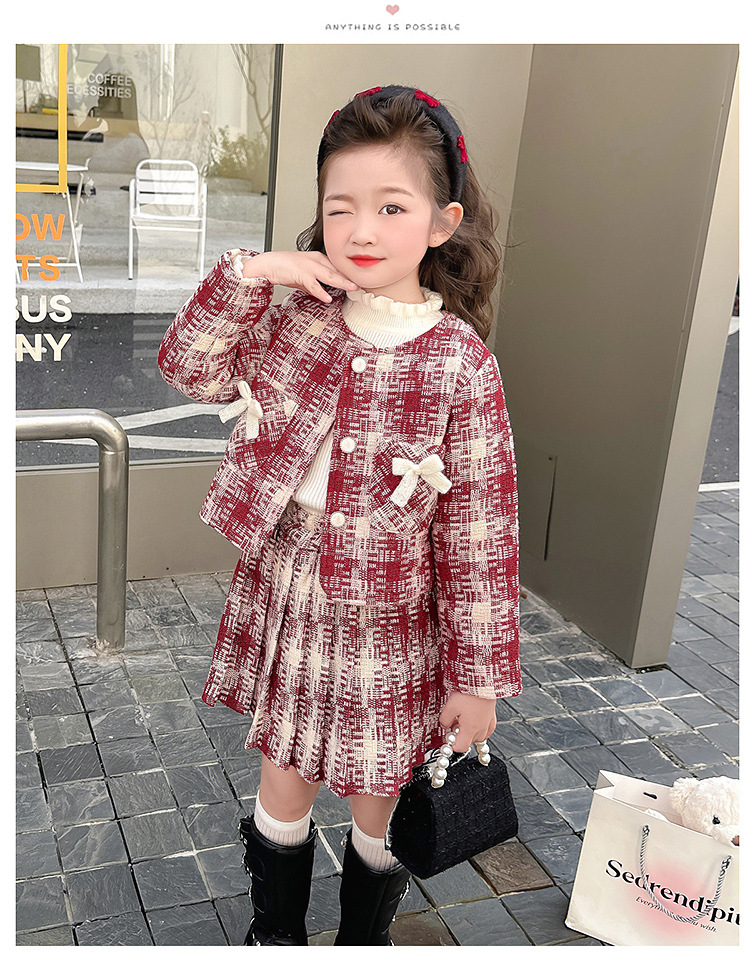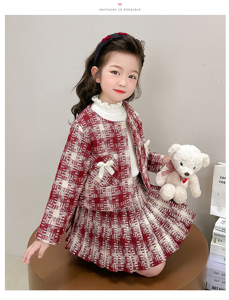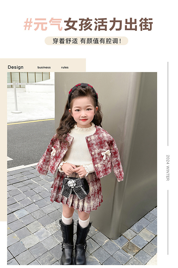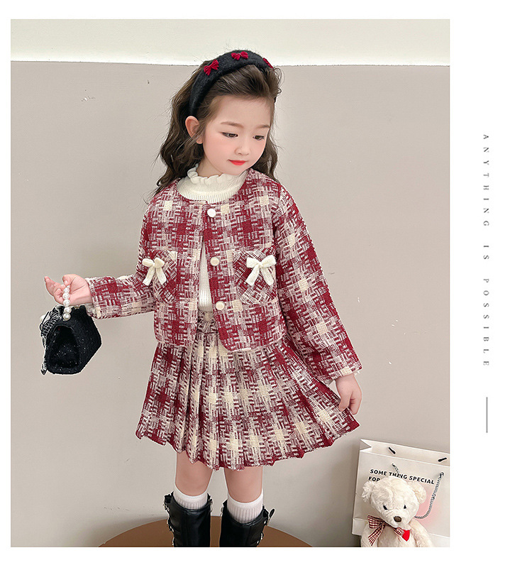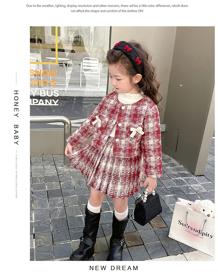 여아용 작은 프랑스 스타일 투피스 세트 가을 겨울 2025 신상 패션 여아용 누빔 두꺼운 세트 중소 어린이용스토어 가기