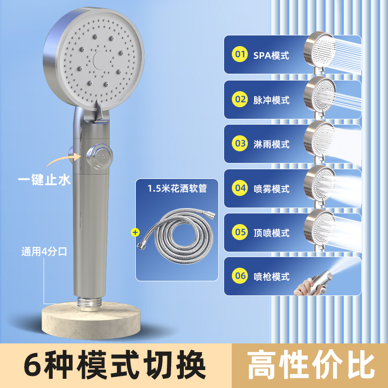 • [실버] 6단 원터치 지수샤워 + 1.5m 샤워파이프