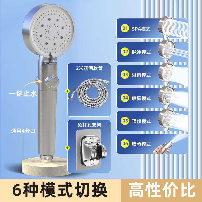 • [실버] 6단 원터치 지수샤워 + 2m 샤워파이프