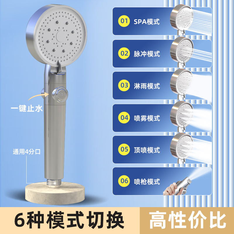 • [실버] 6단 원터치 지수 샤워헤드