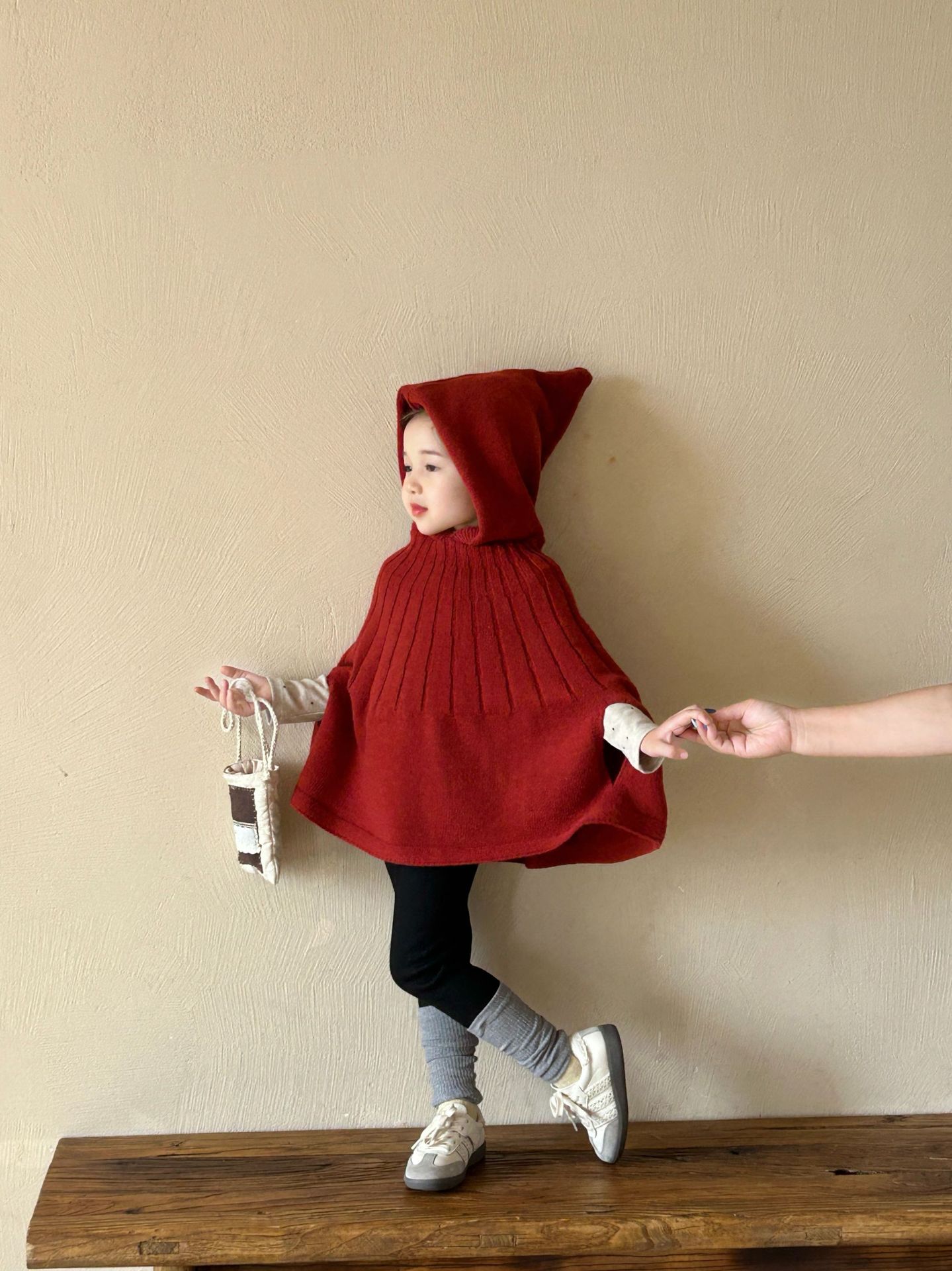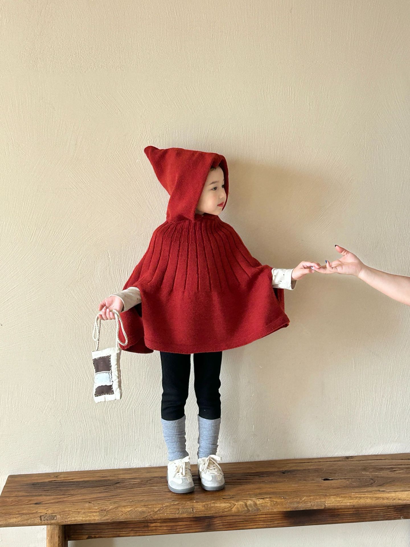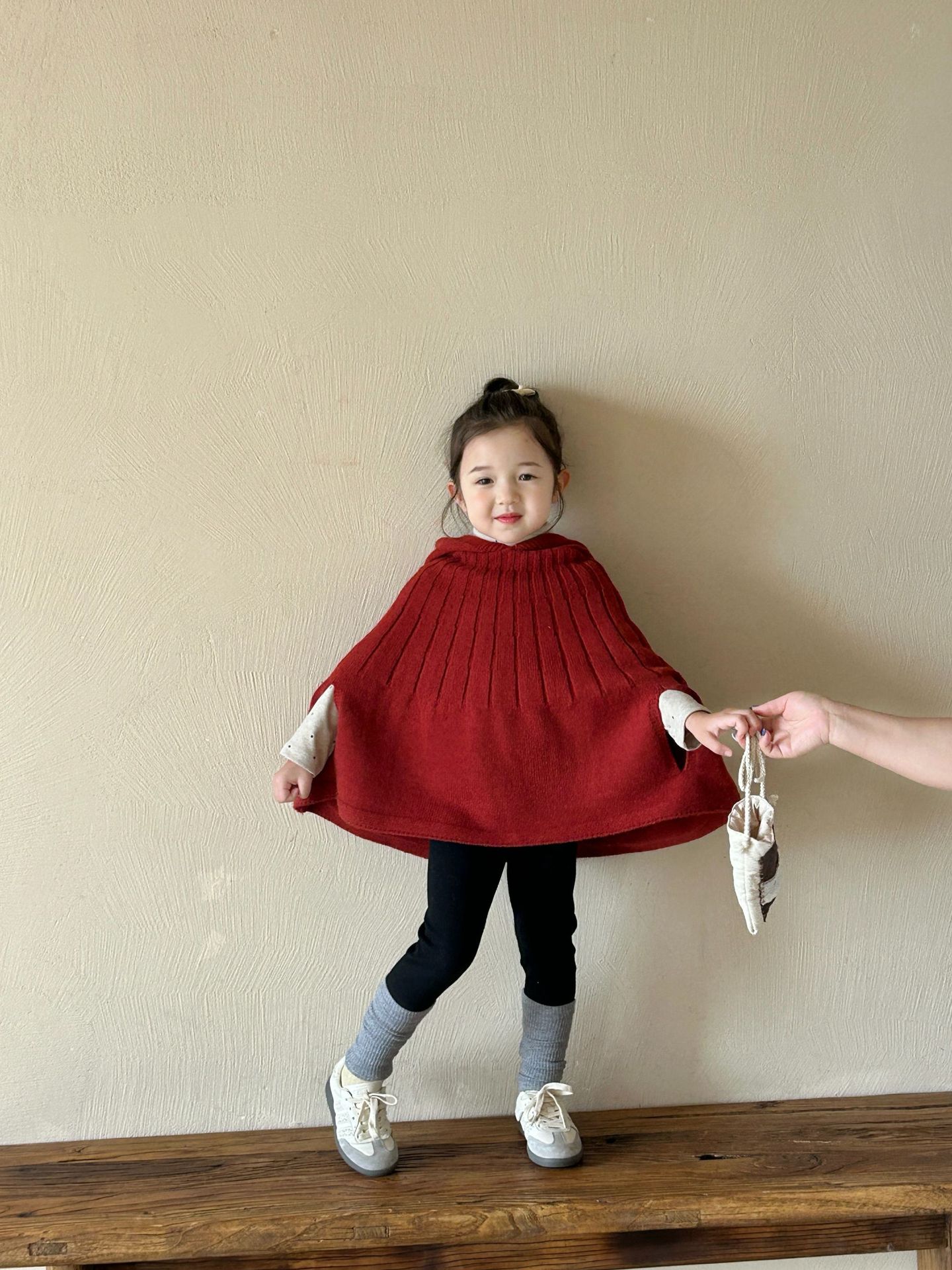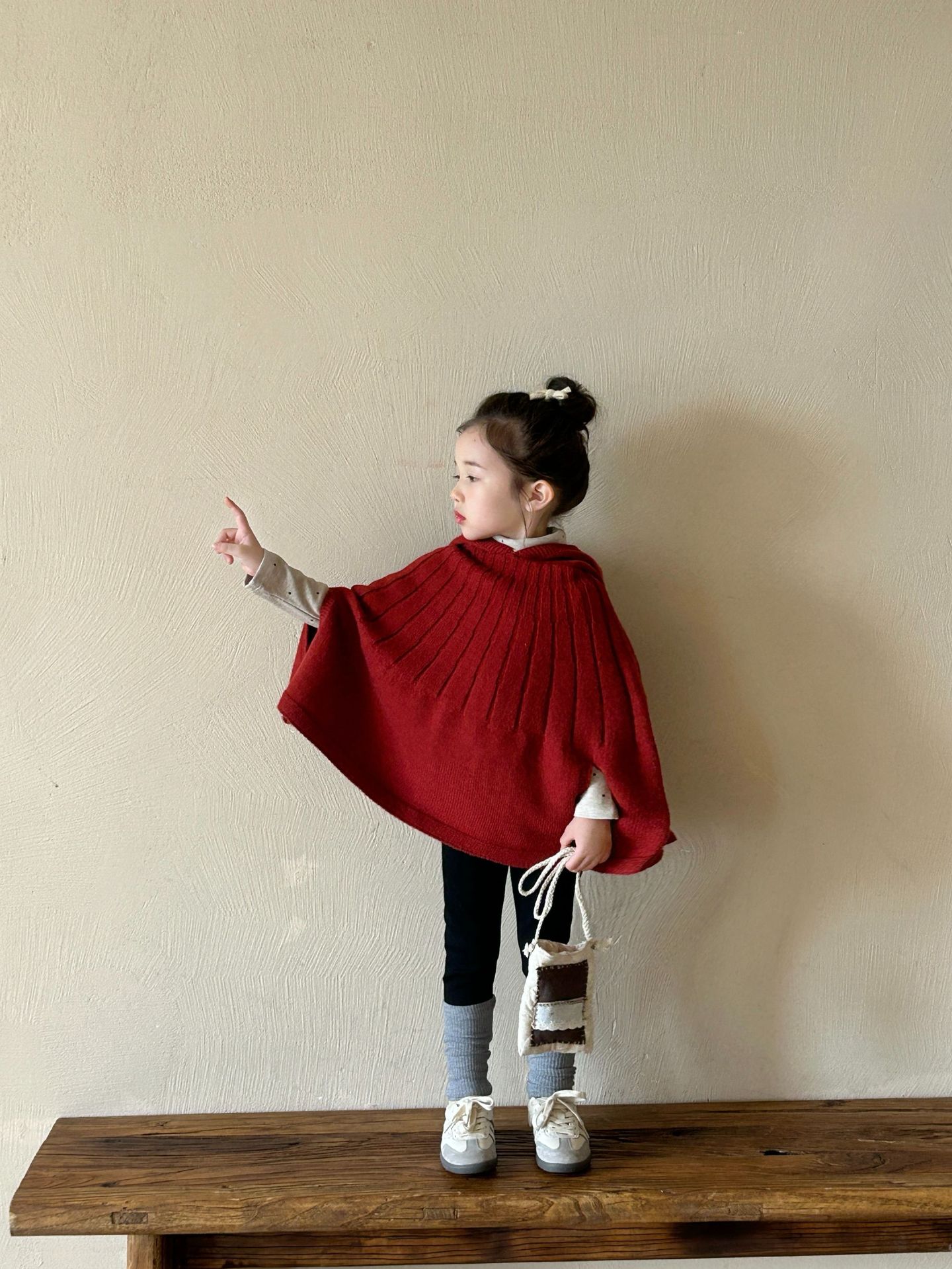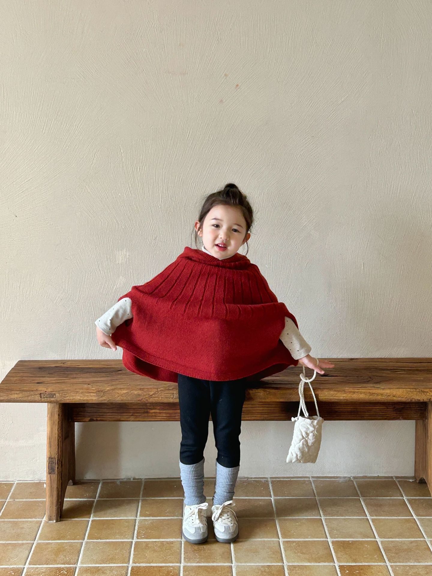 2024 겨울 새로운 한국 아동복 소녀 귀여운 후드 케이프 스웨터 아기 크리스마스 케이프 울스토어 가기