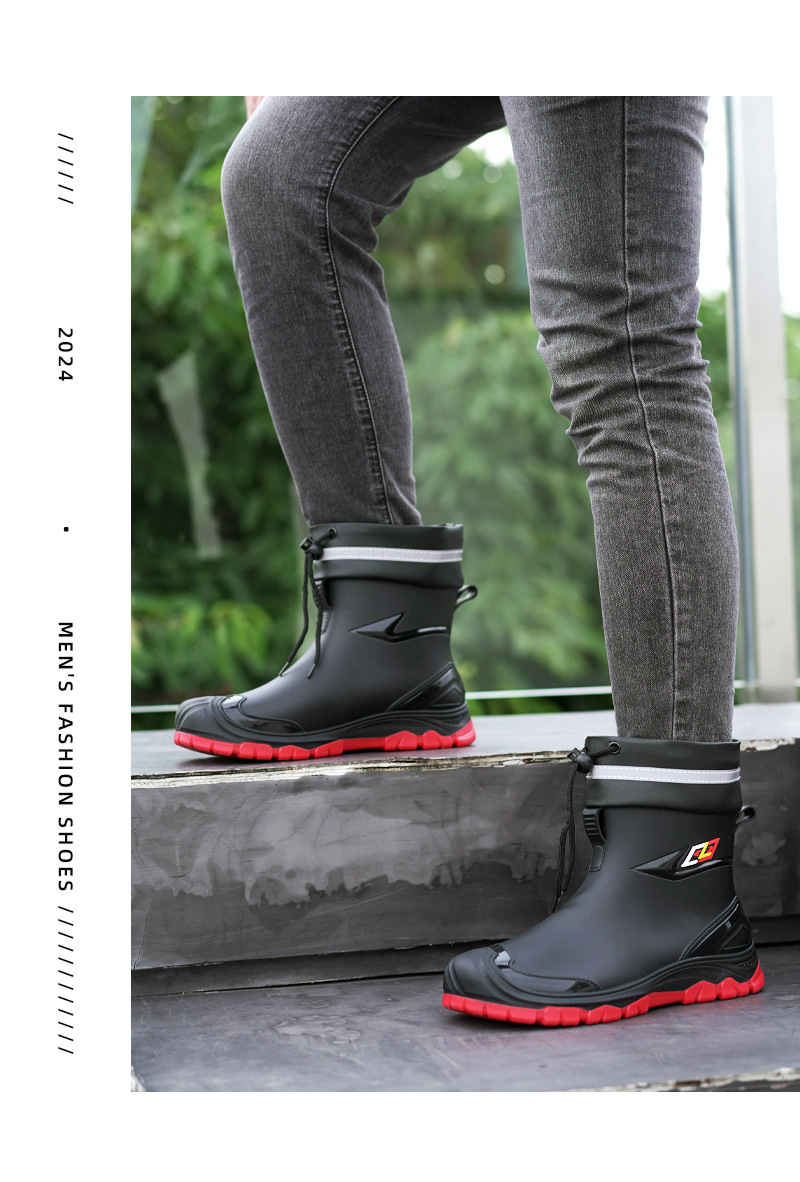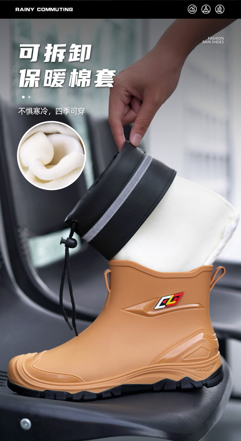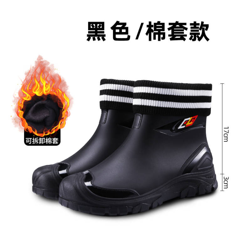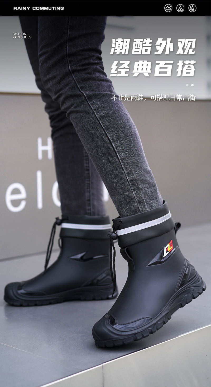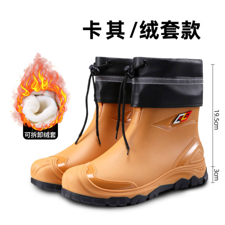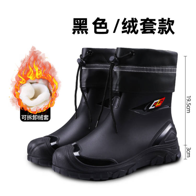 번들 입 비 신발 남자의 중간 기모 두꺼운 미끄럼 방지 방수 장화 낚시 고무 신발 착용 방지 작업 따뜻한 물 신발스토어 가기