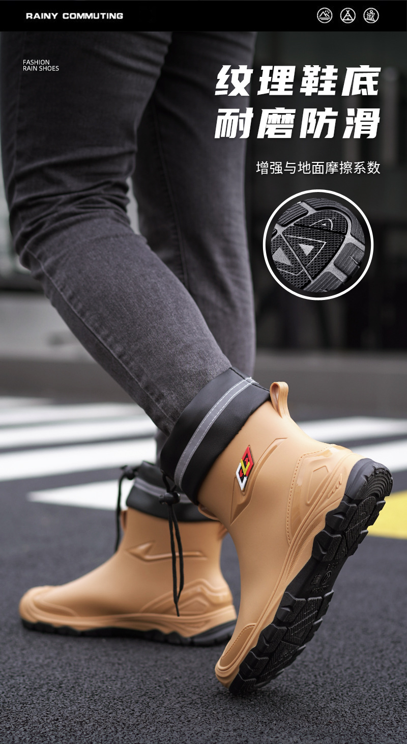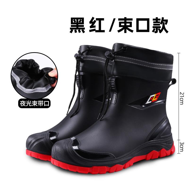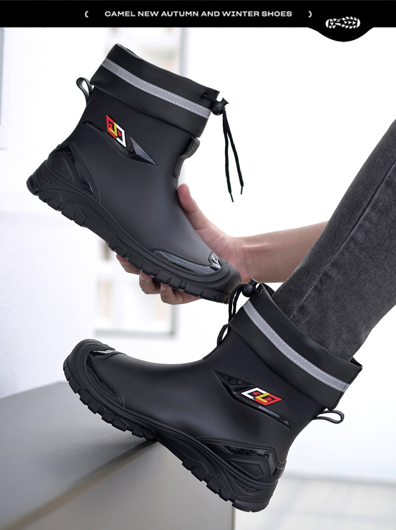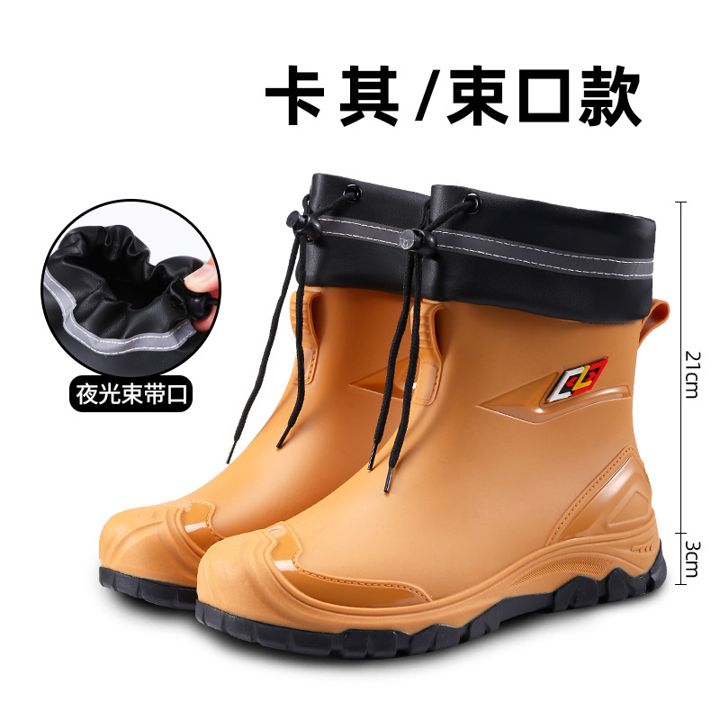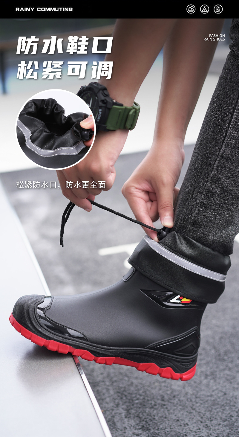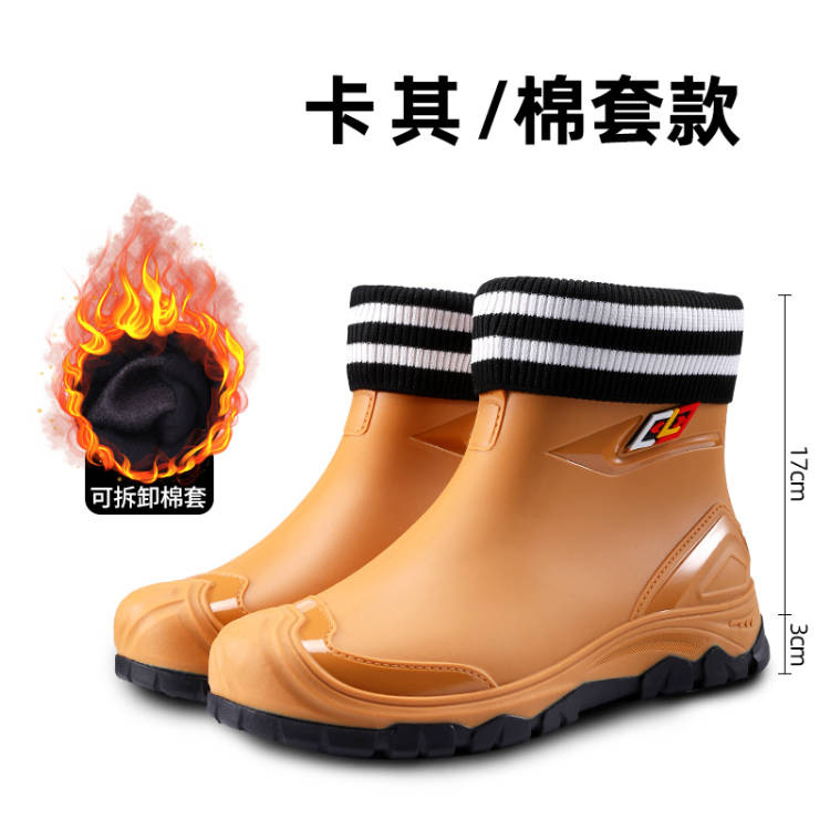 번들 입 비 신발 남자의 중간 기모 두꺼운 미끄럼 방지 방수 장화 낚시 고무 신발 착용 방지 작업 따뜻한 물 신발스토어 가기