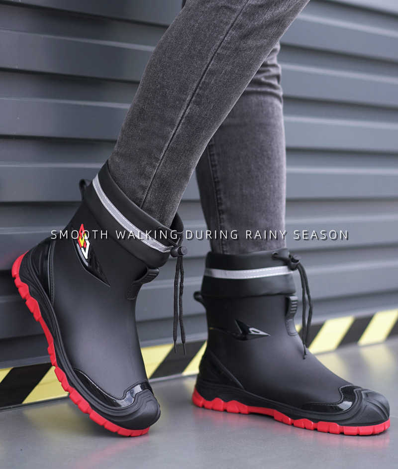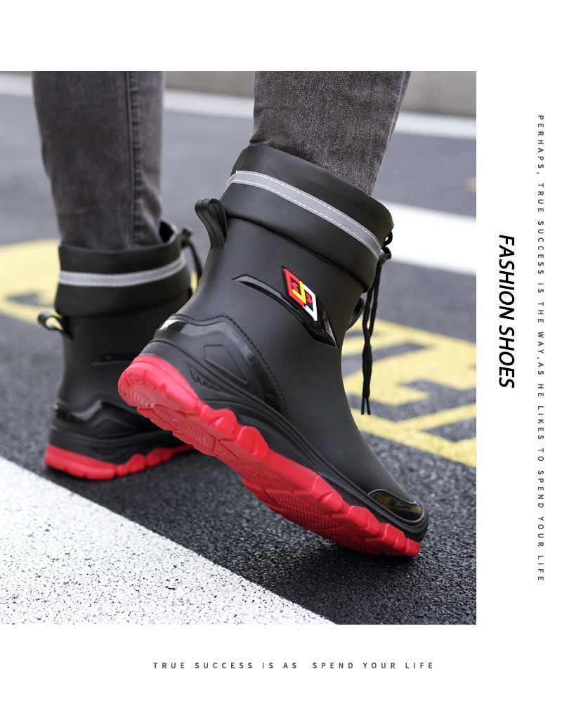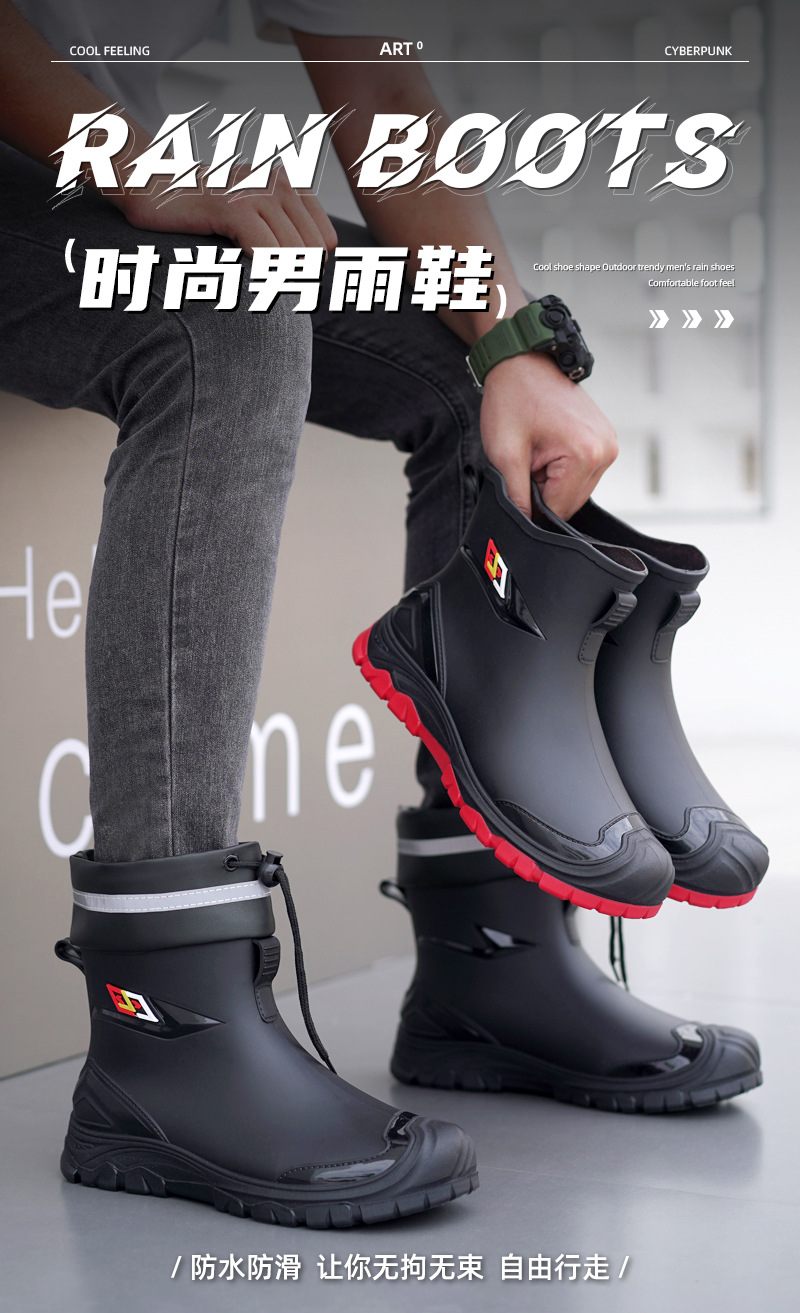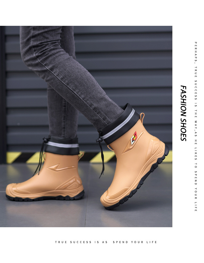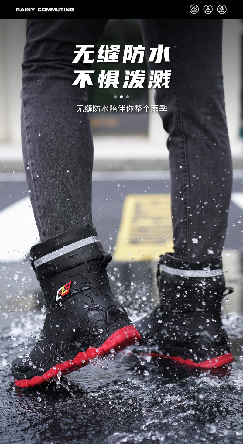 번들 입 비 신발 남자의 중간 기모 두꺼운 미끄럼 방지 방수 장화 낚시 고무 신발 착용 방지 작업 따뜻한 물 신발스토어 가기
