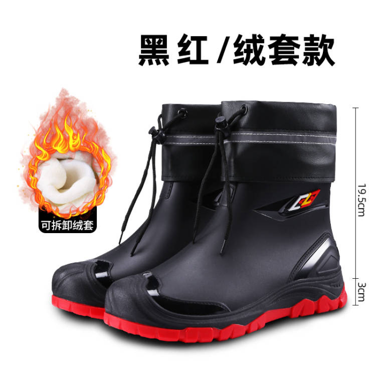 번들 입 비 신발 남자의 중간 기모 두꺼운 미끄럼 방지 방수 장화 낚시 고무 신발 착용 방지 작업 따뜻한 물 신발