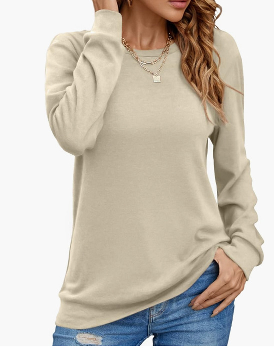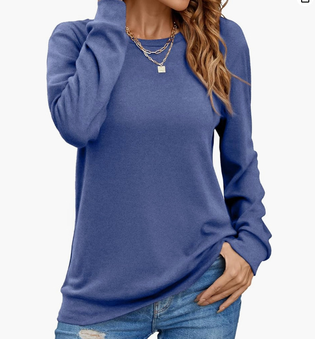 아마존 국경 유럽 및 미국 대외 무역 2023 새로운 가을과 겨울 여성의 긴 소매 셔츠 단색 둥근 목 코트 여성스토어 가기