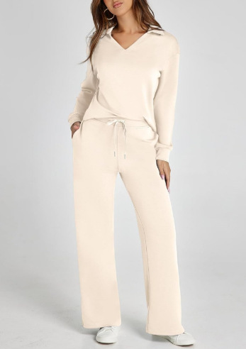 2023 아마존 유럽과 미국 가을과 겨울 새로운 패션 캐주얼 여성의 긴 소매 drawstring 단색 통근 바지 세트 여성