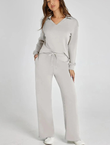2023 아마존 유럽과 미국 가을과 겨울 새로운 패션 캐주얼 여성의 긴 소매 drawstring 단색 통근 바지 세트 여성스토어 가기