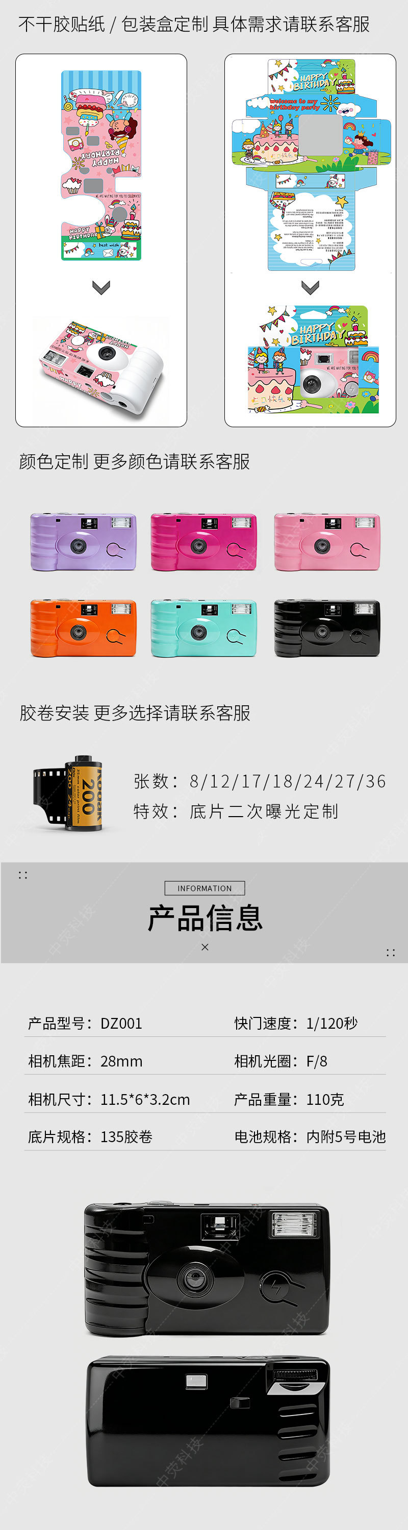 새로운 광택 복고풍 스포츠 필름 카메라 컬러 네거티브 일회용 포인트 앤 슛 필름 카메라