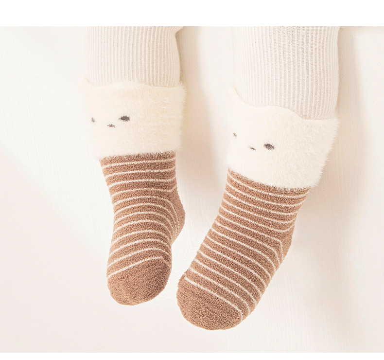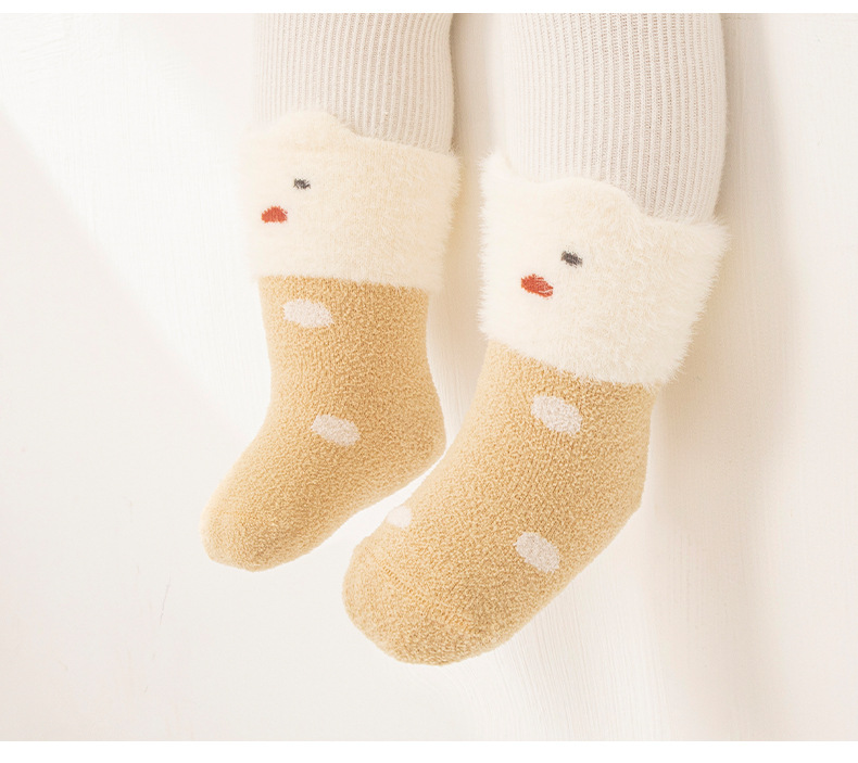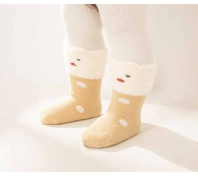 신생아 아기 양말 가을 겨울 기모 따뜻한 아기 양말 겨울 두꺼운 만화 느슨한 입면 양말 신생아