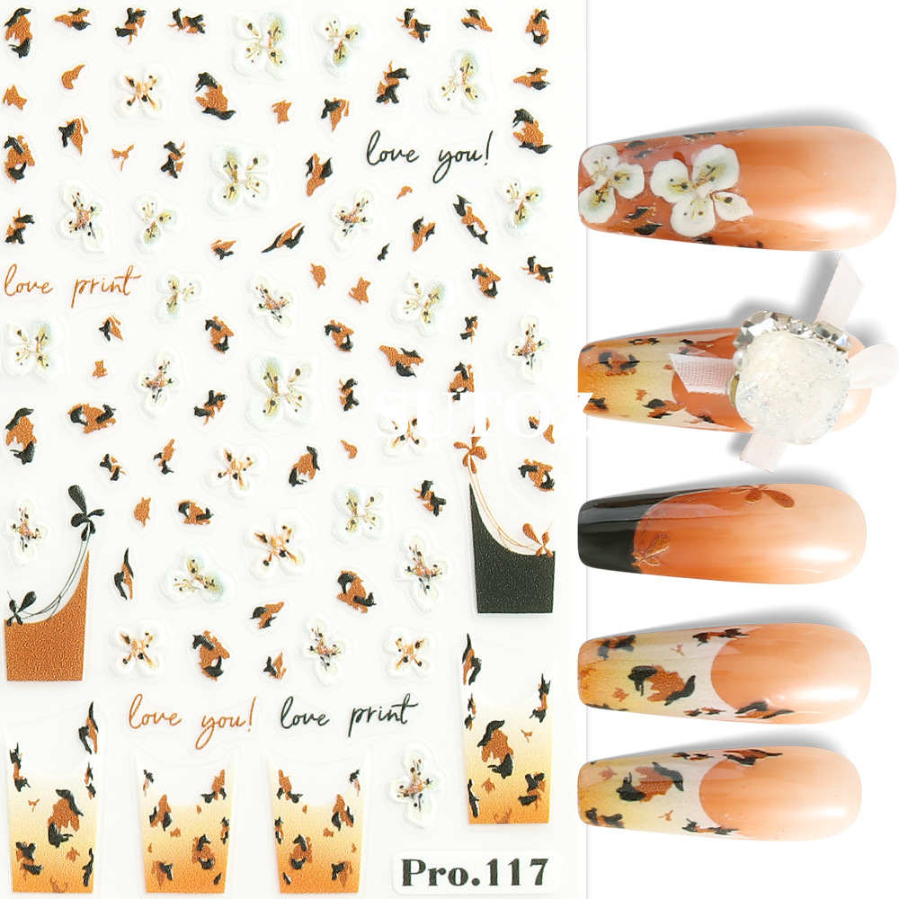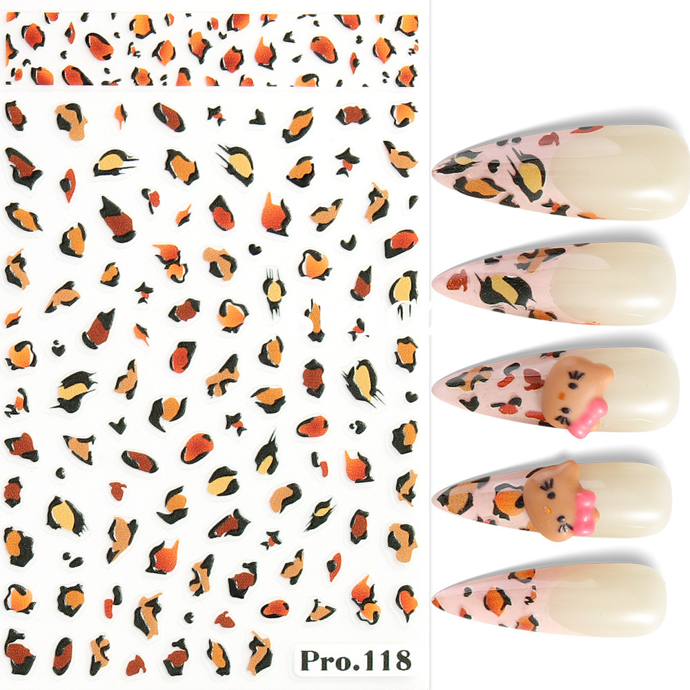 2024 국경 핫 네일 아트 스티커 가을과 겨울 레오파드 무늬 성격 낙서 스파이스 소녀 네일 백 접착 스티커 도매스토어 가기