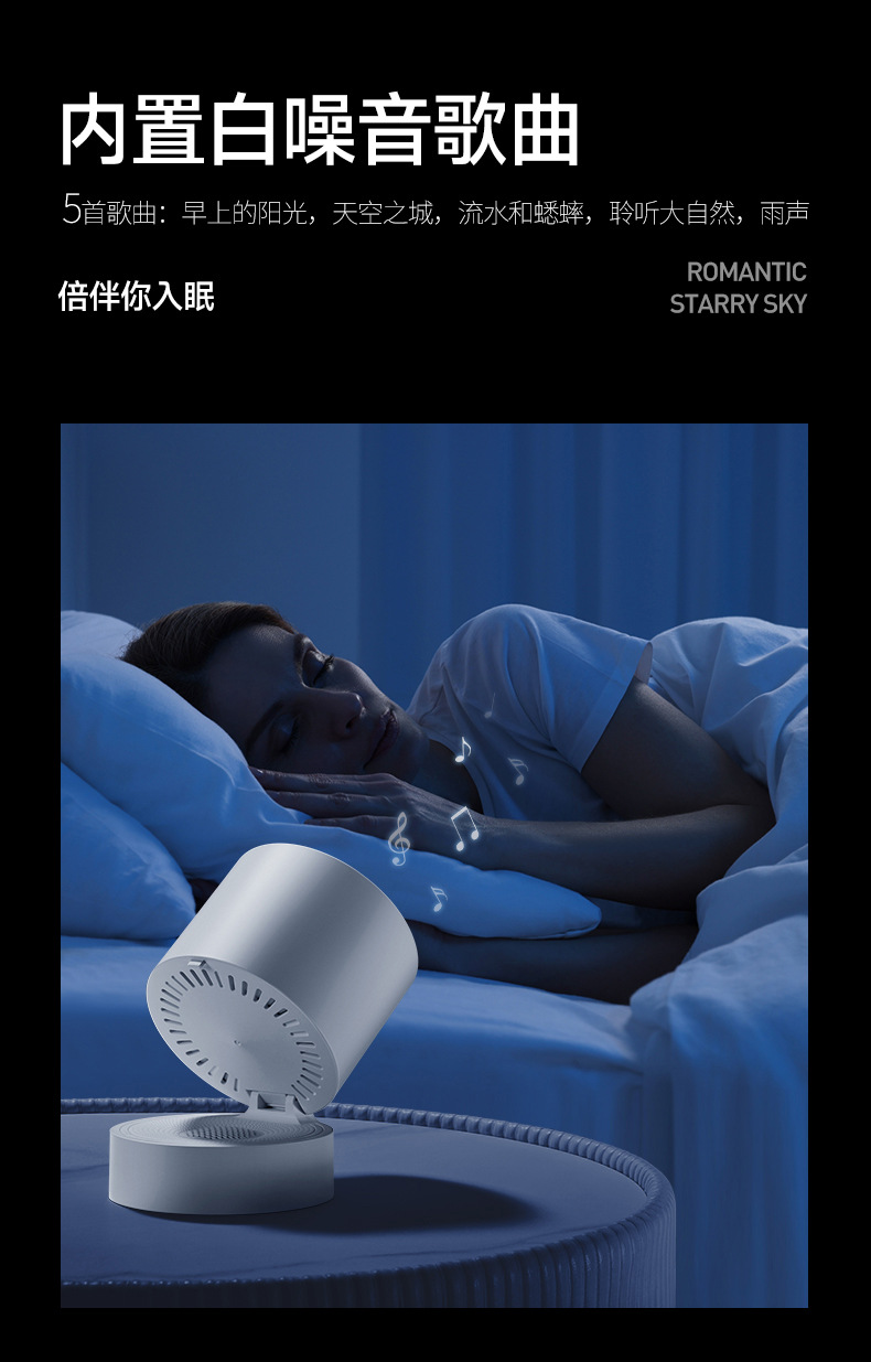 内置白噪音5首:早上的阳光,天空之城,流水和蟋蟀,聆听大自然,雨声 ,开机白噪音音量50%