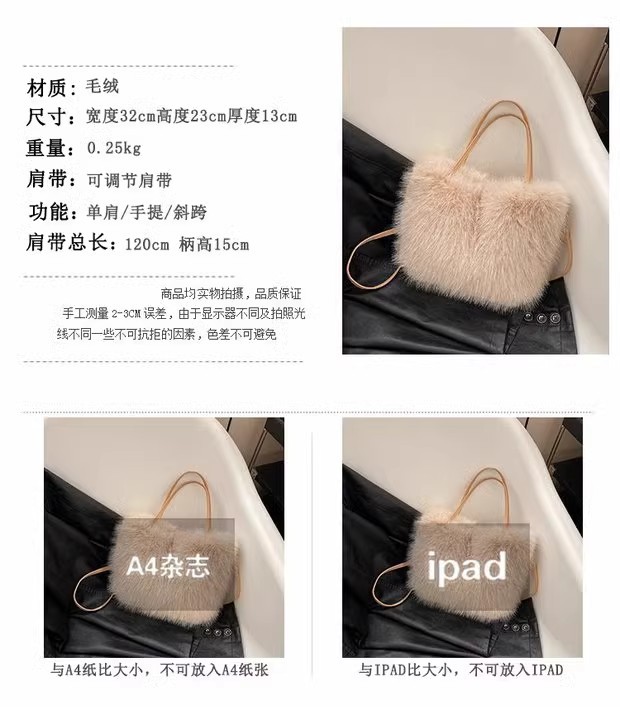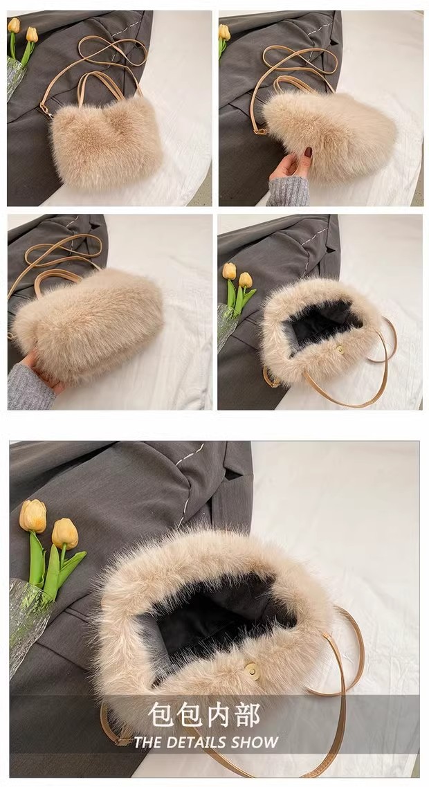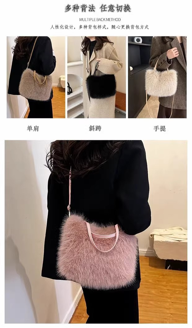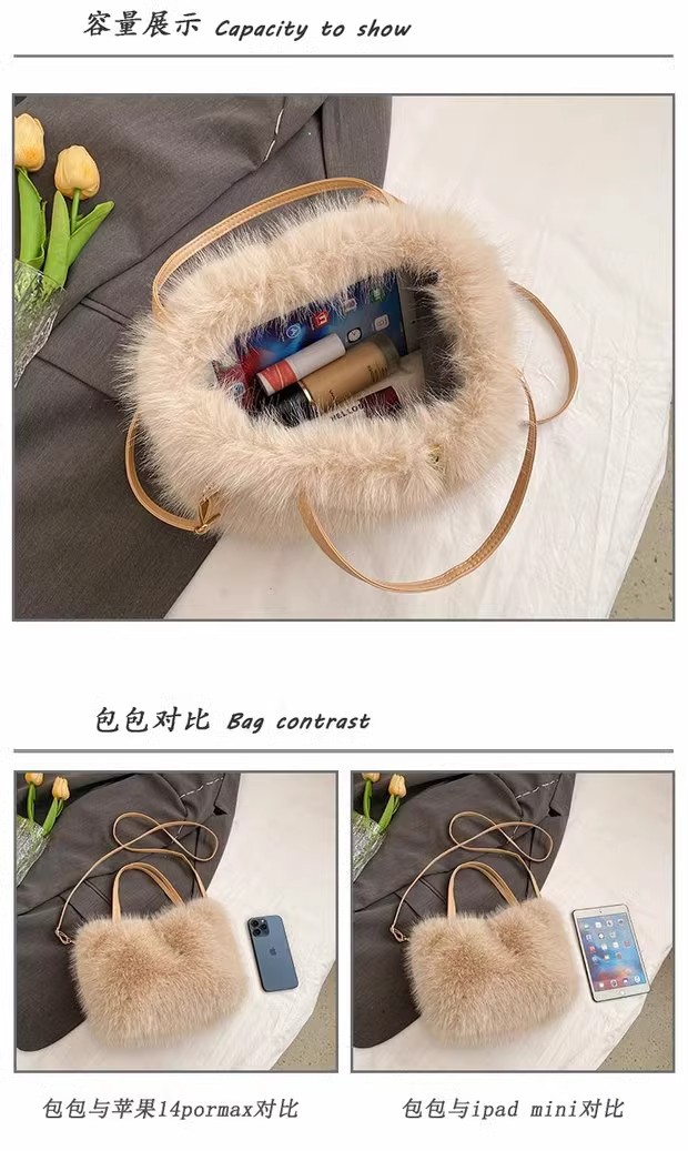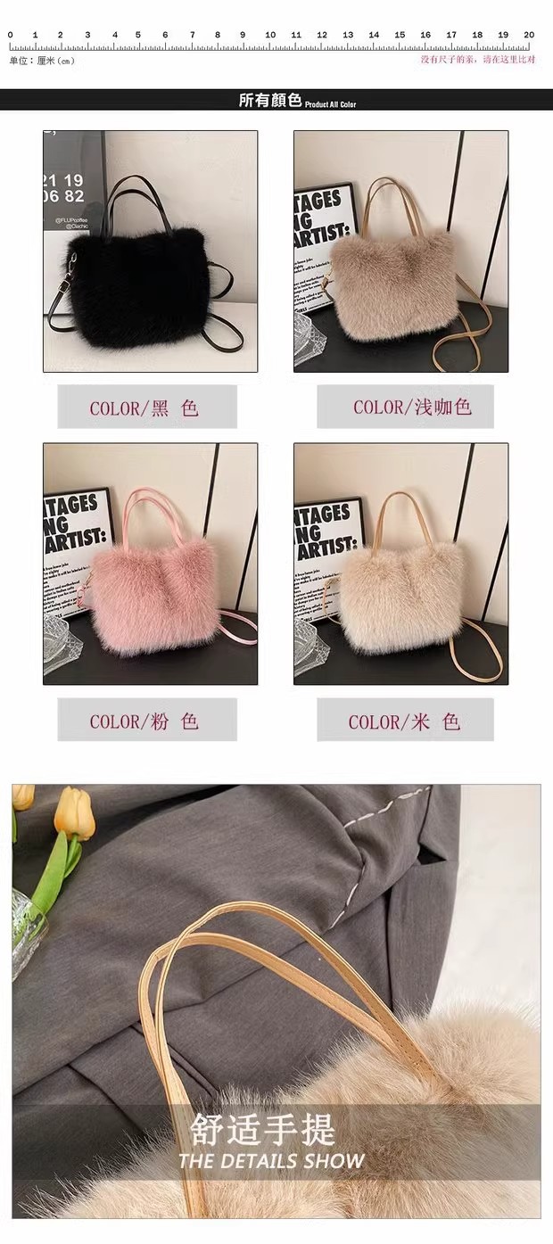 크로스보더 신상 모조 여우털 작은 사각 가방 가을 겨울 크로스백 고급 다용도 핸드백 숄더백 플러시 토트백스토어 가기