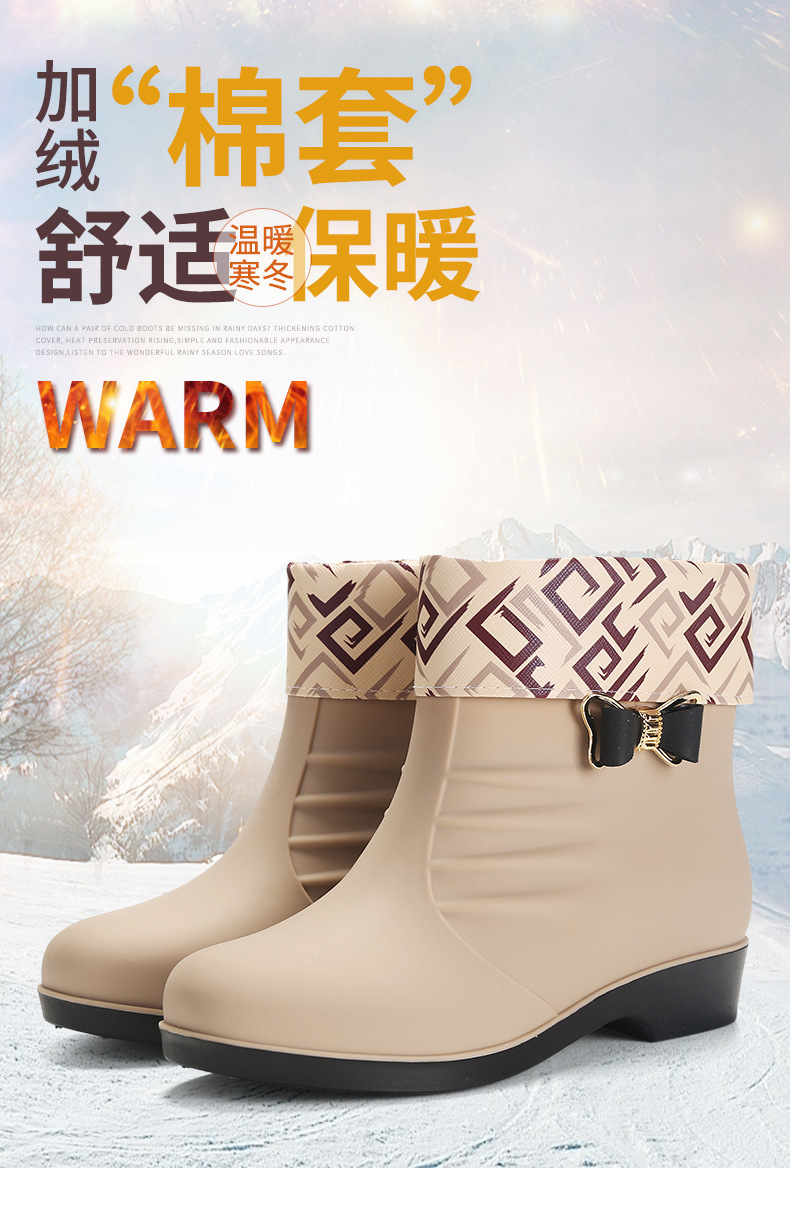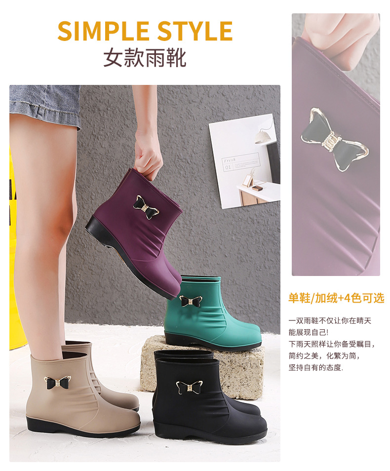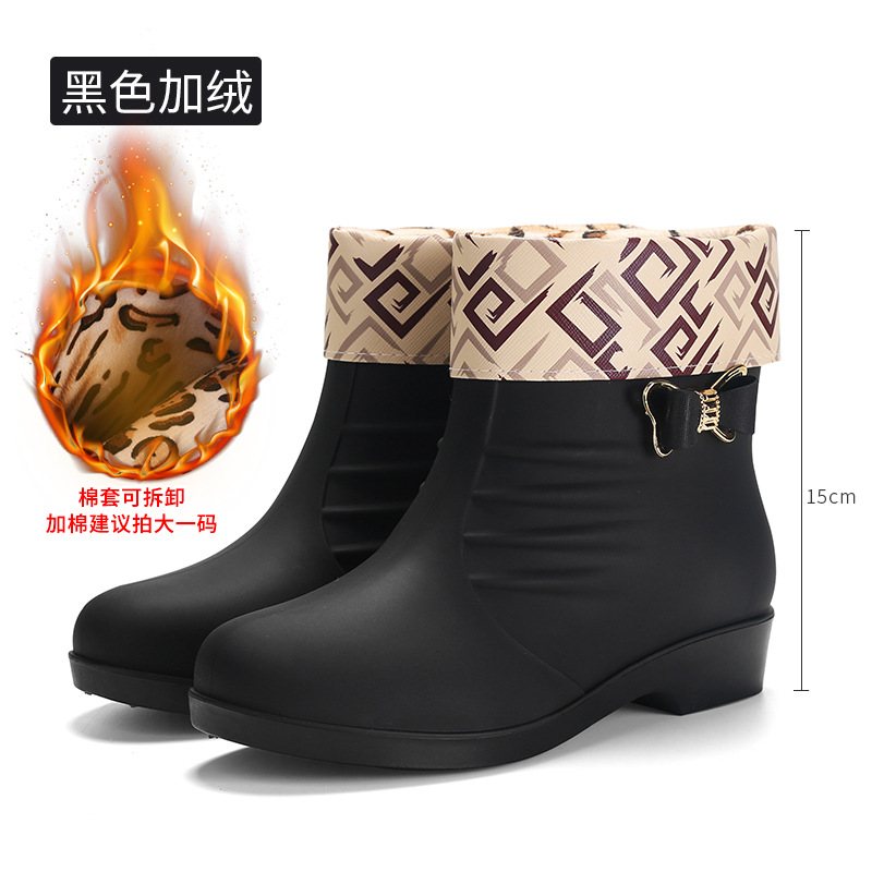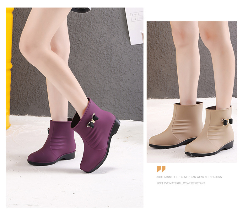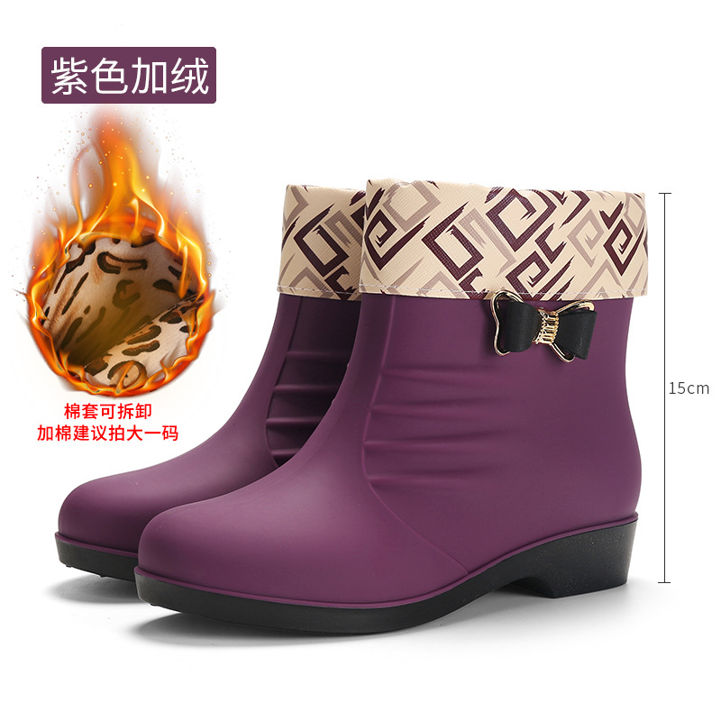 패션 레인 부츠 여성 쇼트 기모 한국식 레인 부츠 비 슬립 따뜻한 방수 신발 여성 새로운 낮은 워터 부츠