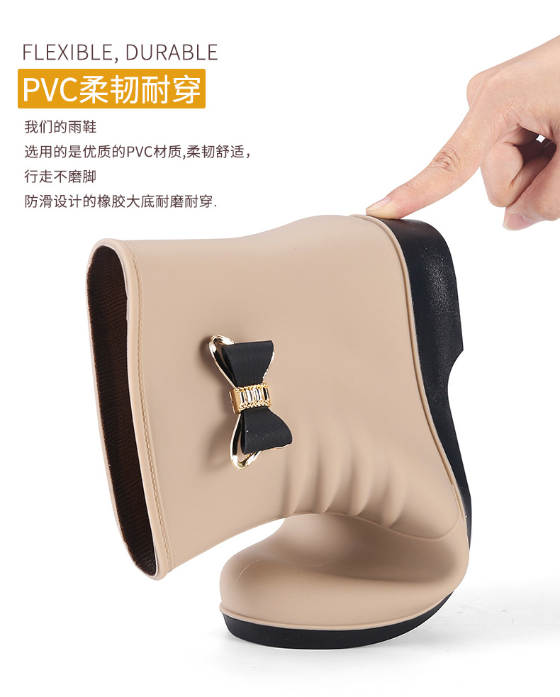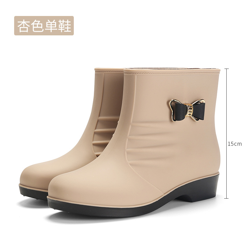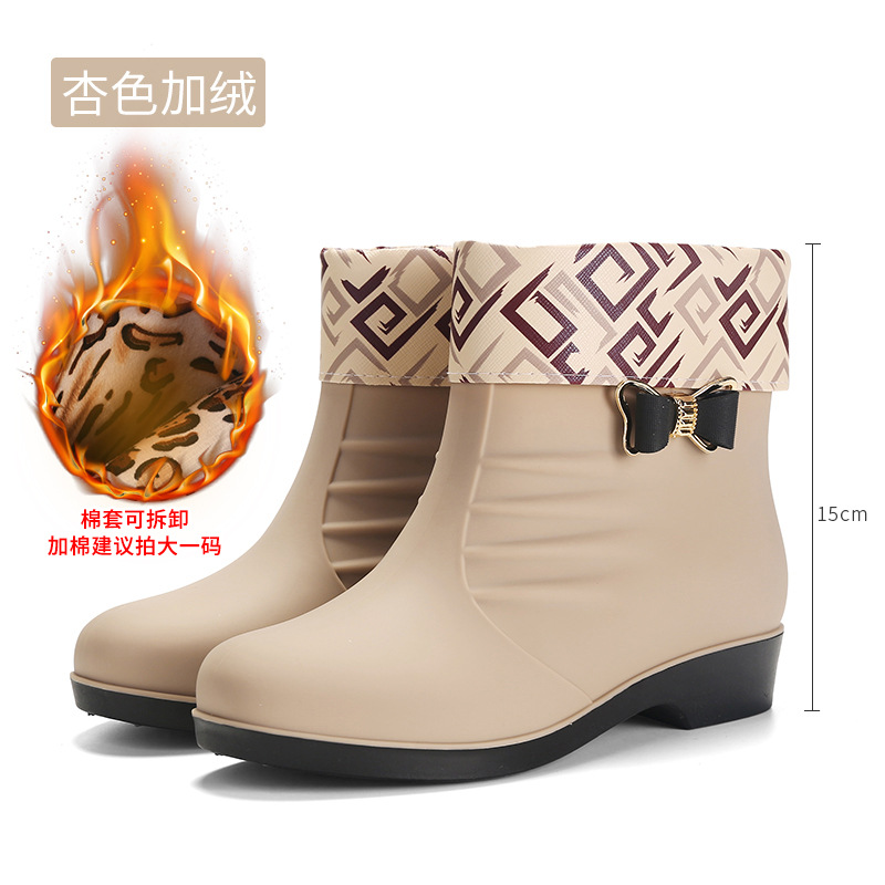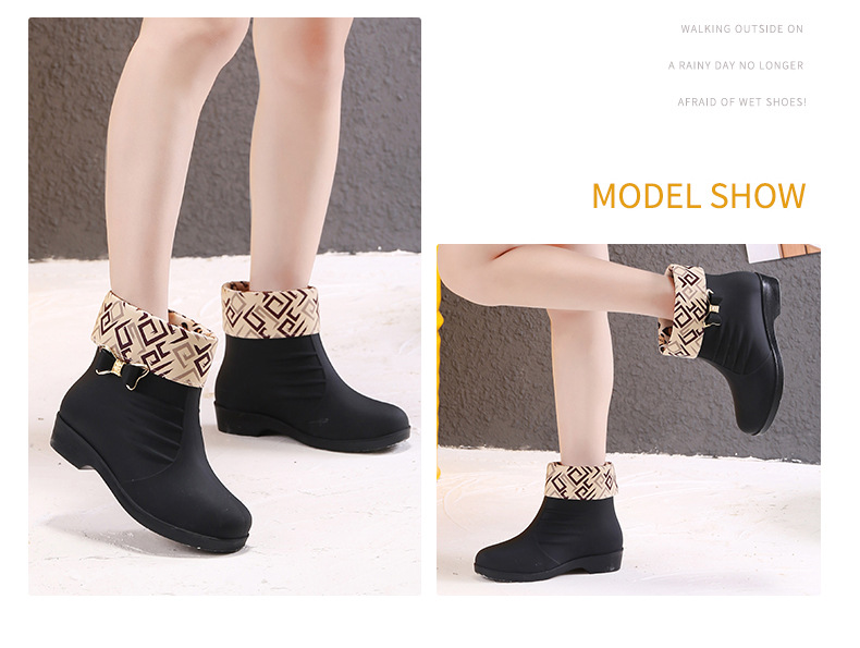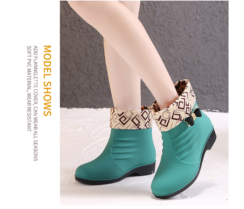 패션 레인 부츠 여성 쇼트 기모 한국식 레인 부츠 비 슬립 따뜻한 방수 신발 여성 새로운 낮은 워터 부츠