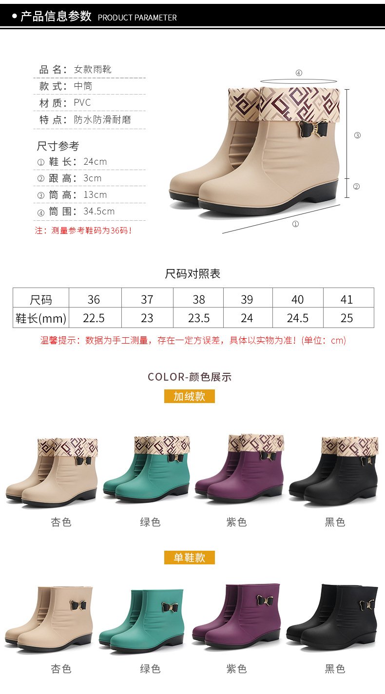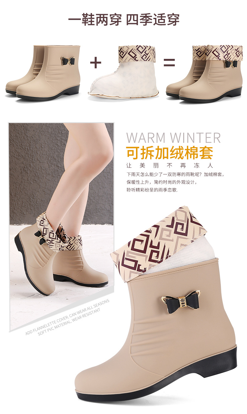 패션 레인 부츠 여성 쇼트 기모 한국식 레인 부츠 비 슬립 따뜻한 방수 신발 여성 새로운 낮은 워터 부츠스토어 가기