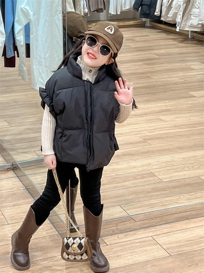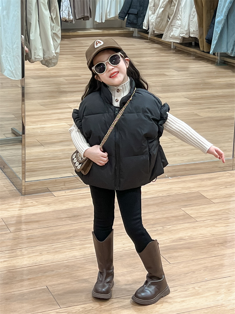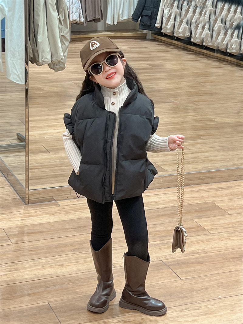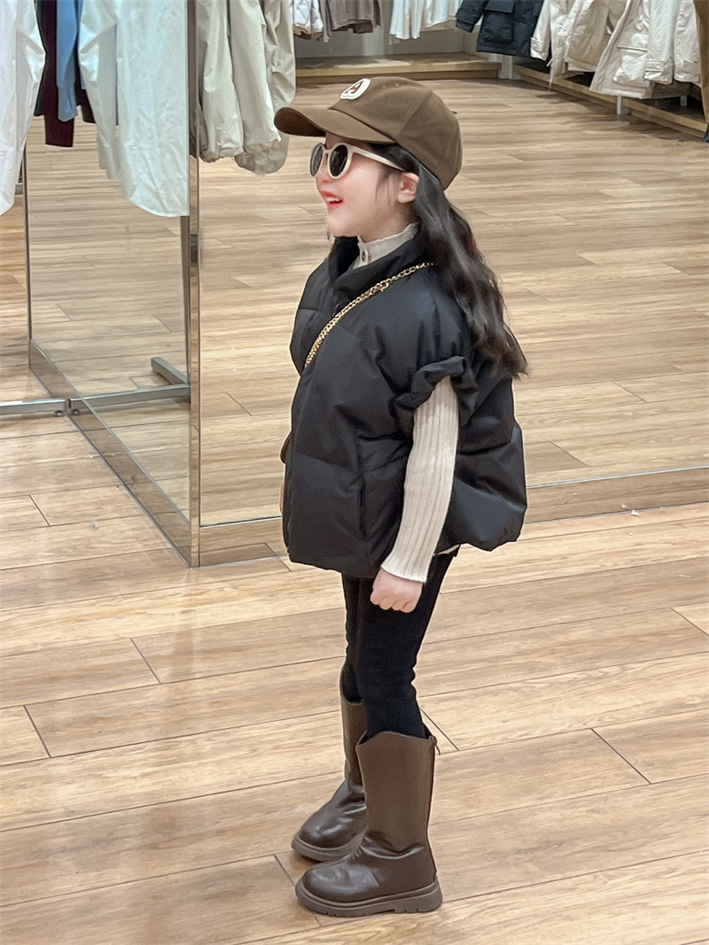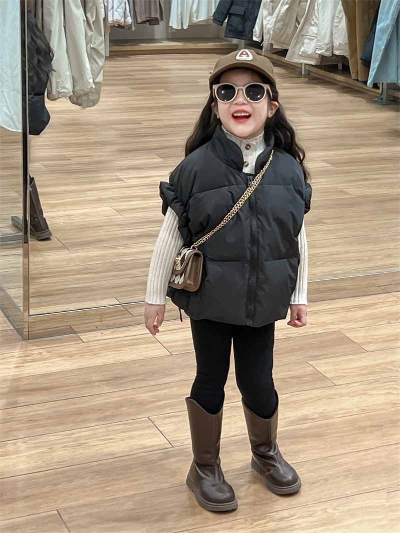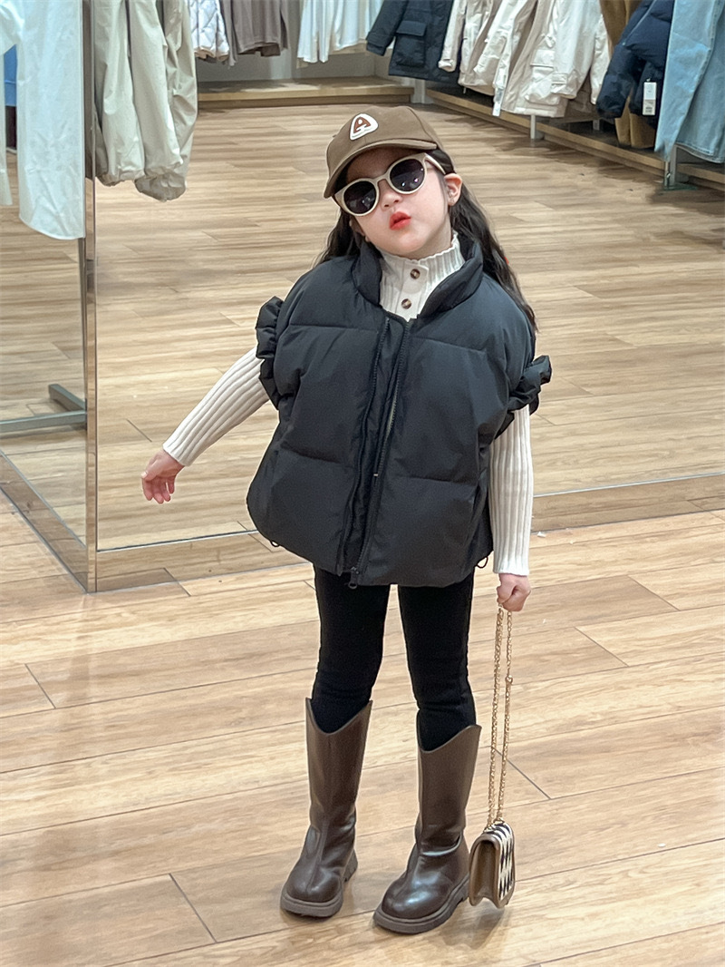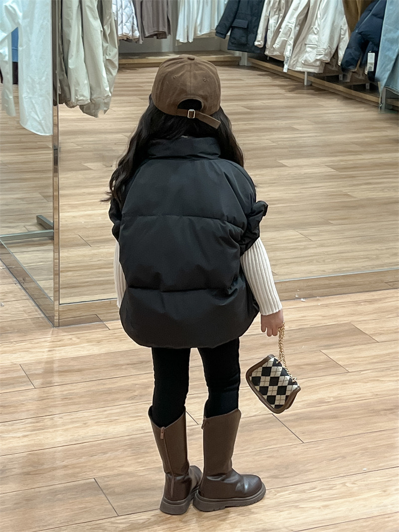 2024 년 소녀 가을과 겨울 검은 색 다운 코튼 양복 조끼 원가슴 양모 내베이스 팬츠 분리 팻스토어 가기