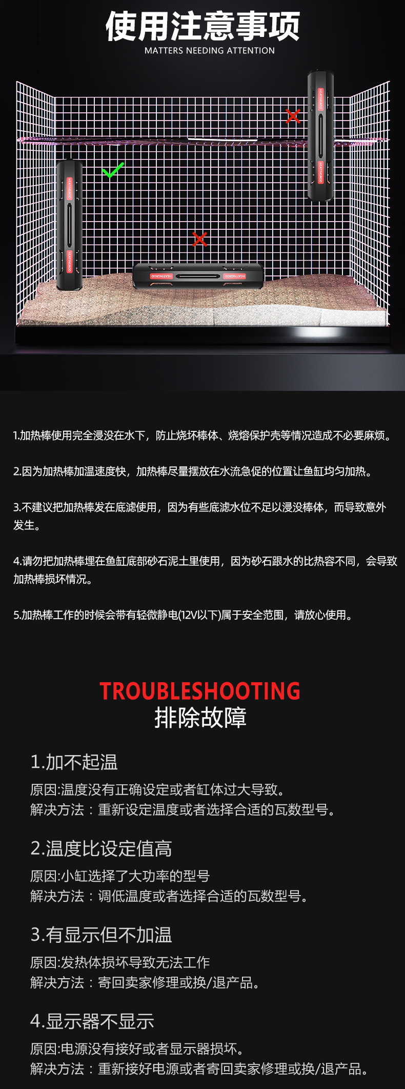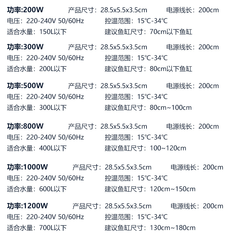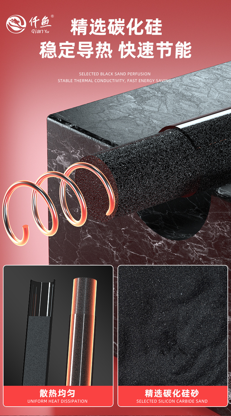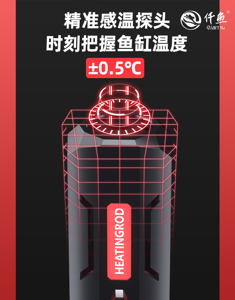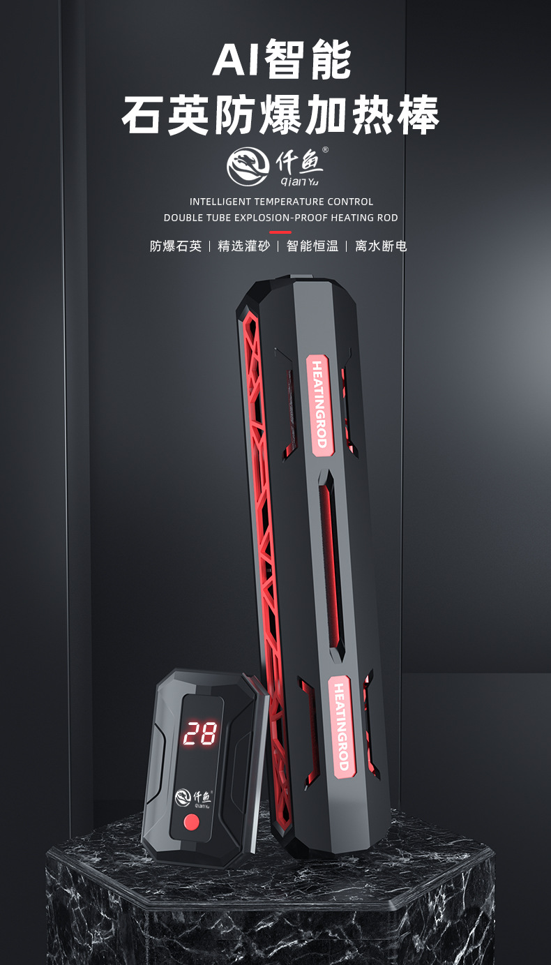 천 물고기 QY-905 단일 튜브 석영 AI 지능형 온도 제어 단일 튜브 폭발 방지 가열로드 어항 가열로드 물 파워