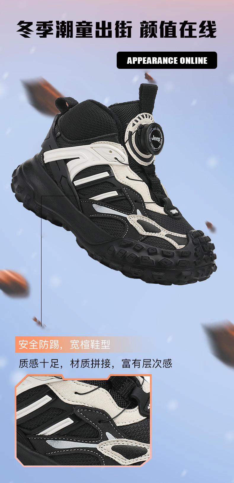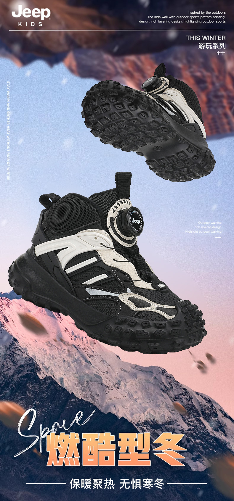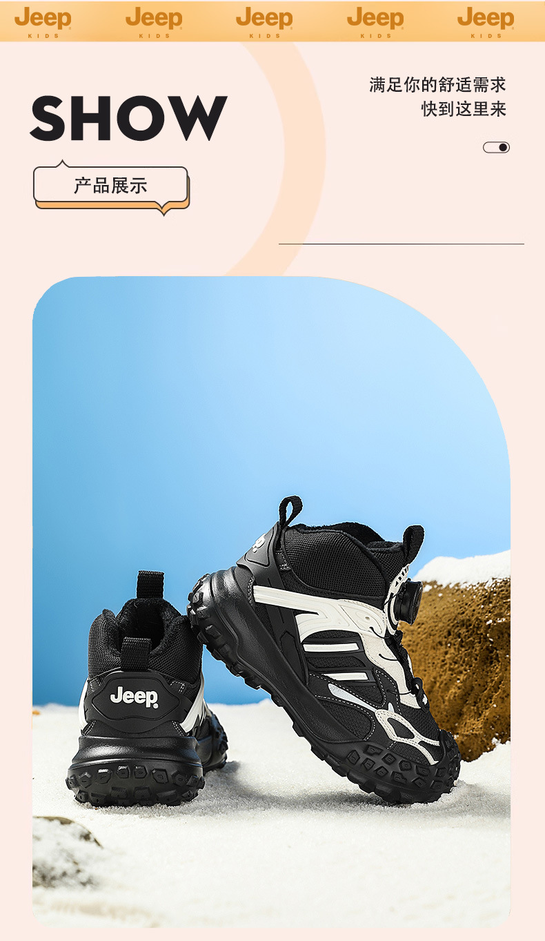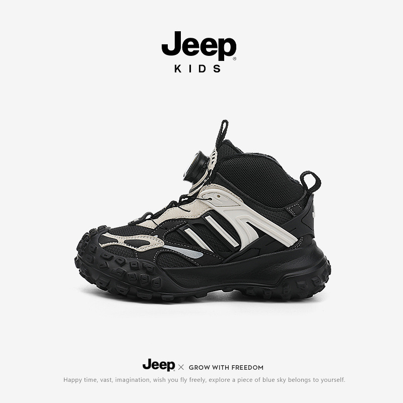 Jeep 어린이 신발 어린이 벨벳 하이 탑 코튼 신발 소녀 따뜻한 스포츠 신발 겨울 2024 새로운 면화 신발