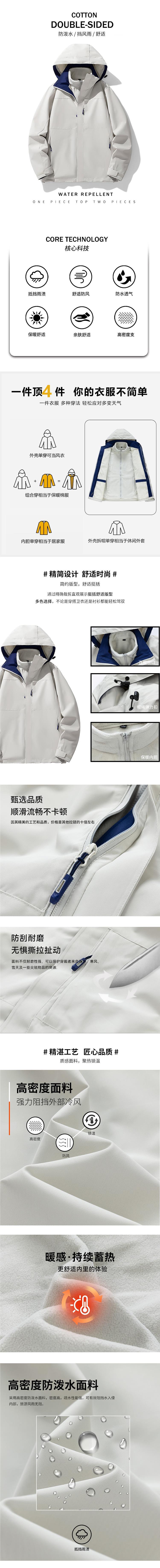 맞춤형 로고 그래핀 야외 커플 재킷 남성과 여성을 위한 3-in-1 탈착식 후드 방수 및 방풍 재킷