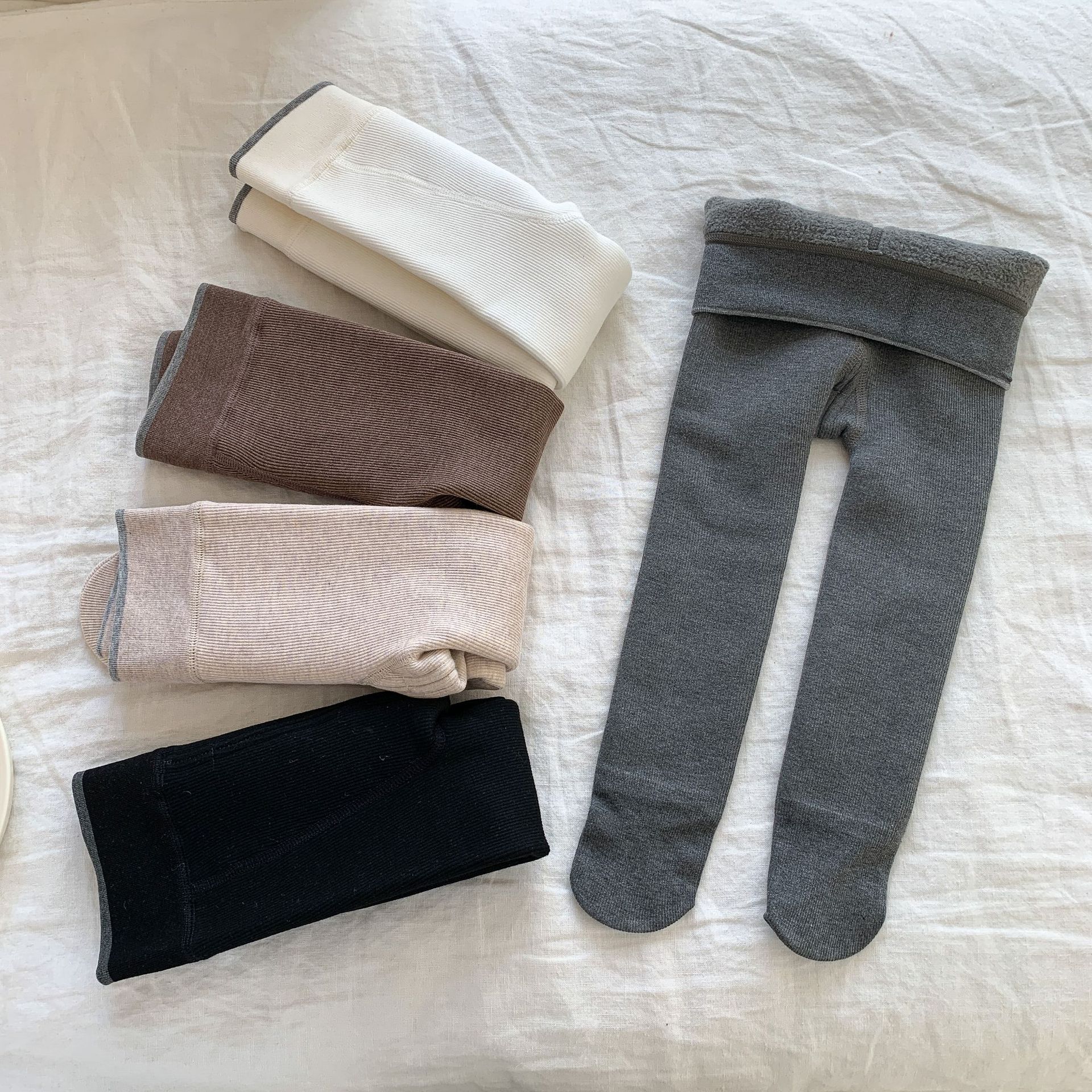사탕 수수 배 아동복 소녀 레깅스 양말 2024 가을과 겨울 새로운 어린이 한국어 버전의 기모 팬티 스타킹 아기 소녀 양말