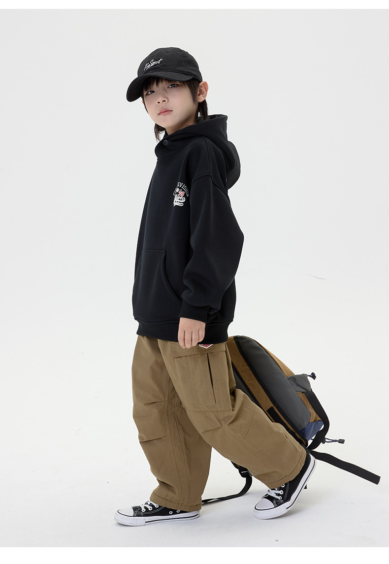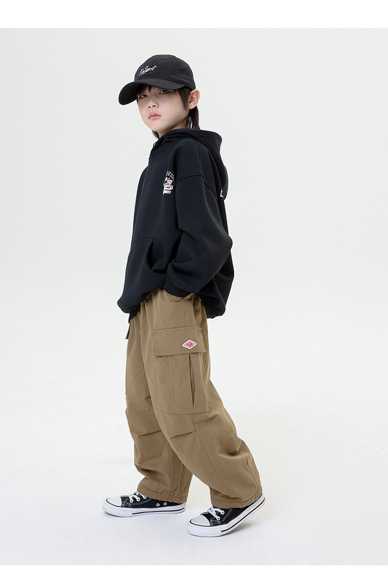소년 기모 캐주얼 바지 2024 가을/겨울 새로운 한국 스타일 어린이 느슨한 게으른 바지 남성 잘 생긴 트렌디 바지스토어 가기
