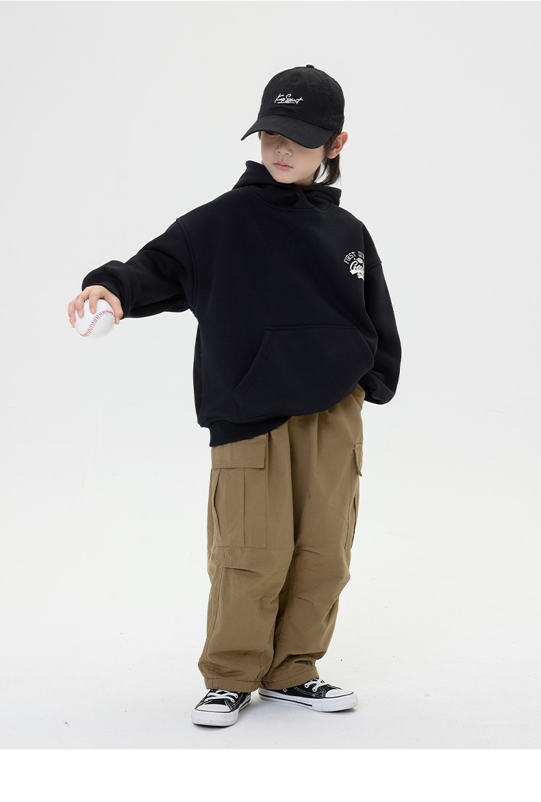 소년 기모 캐주얼 바지 2024 가을/겨울 새로운 한국 스타일 어린이 느슨한 게으른 바지 남성 잘 생긴 트렌디 바지