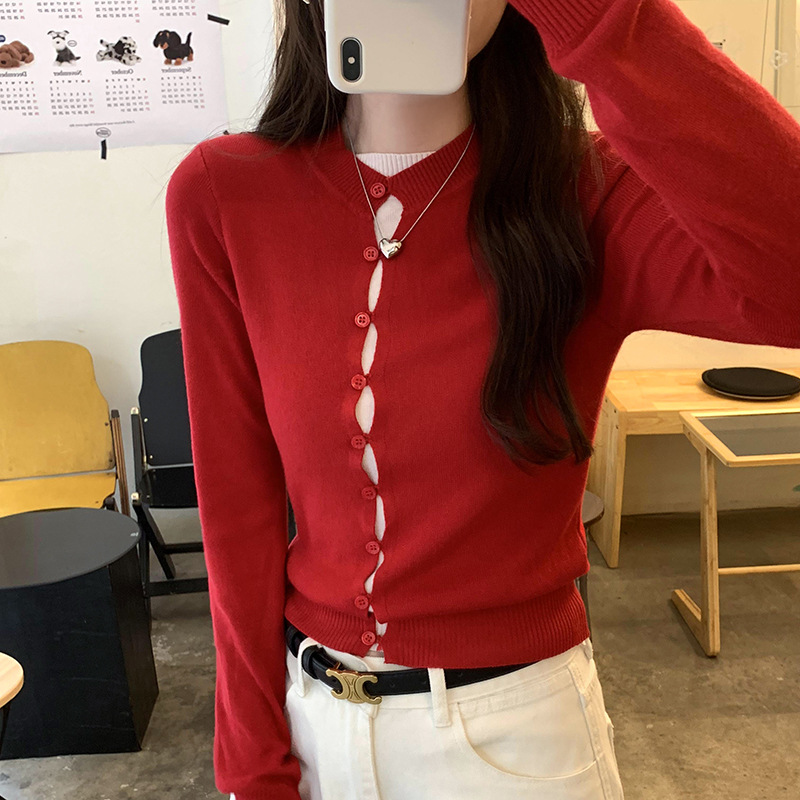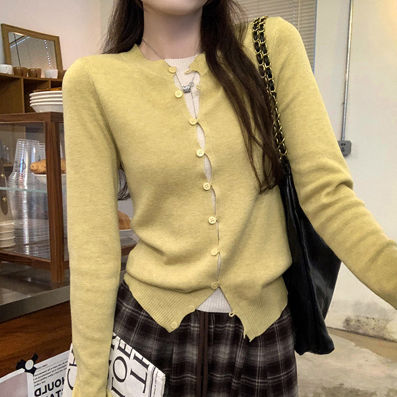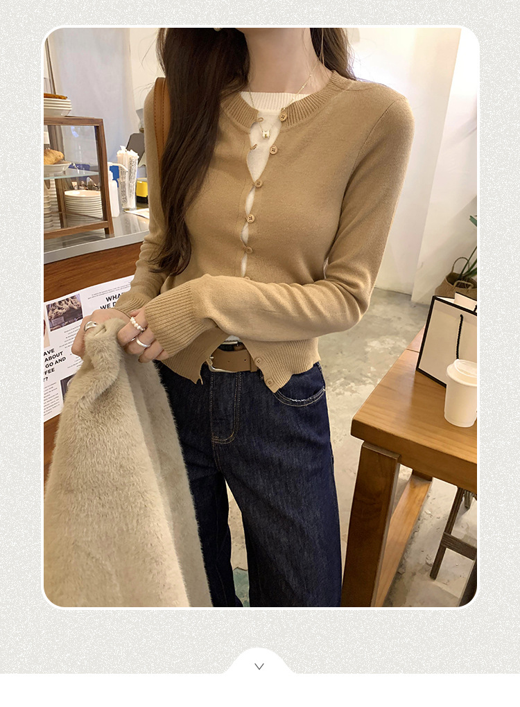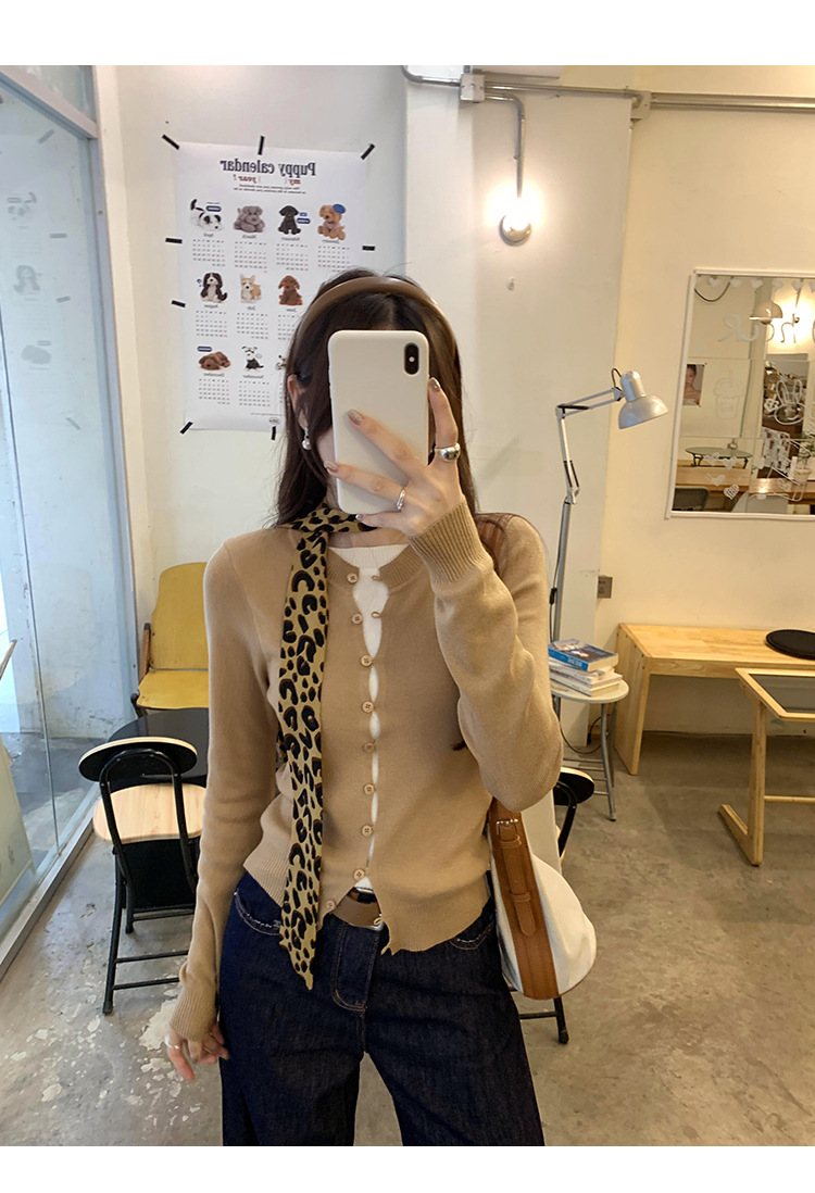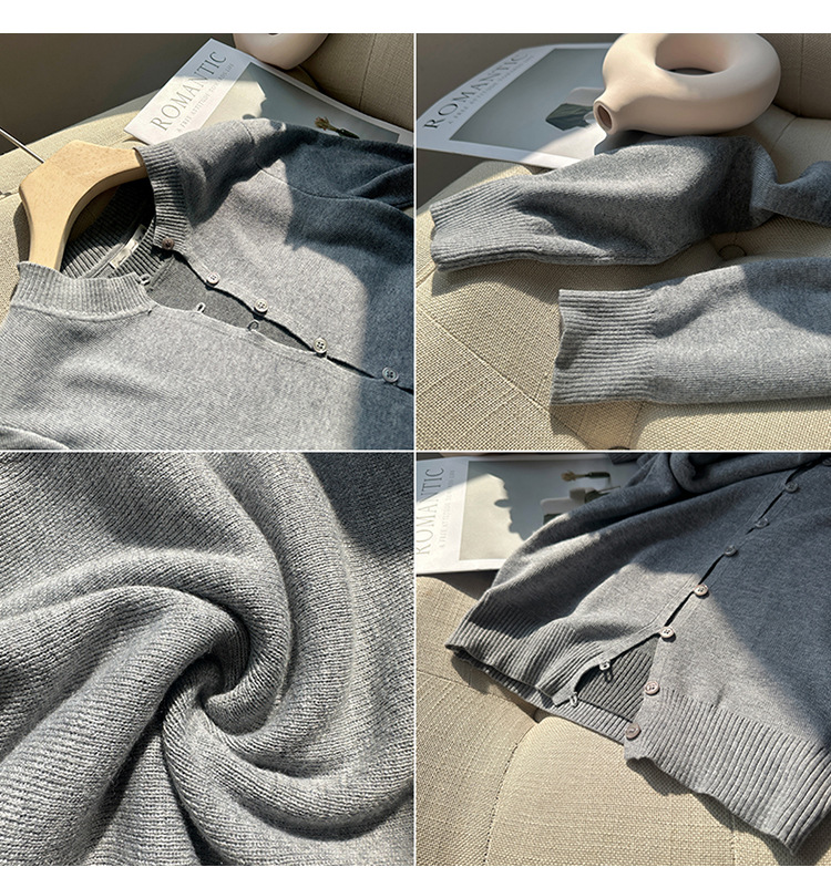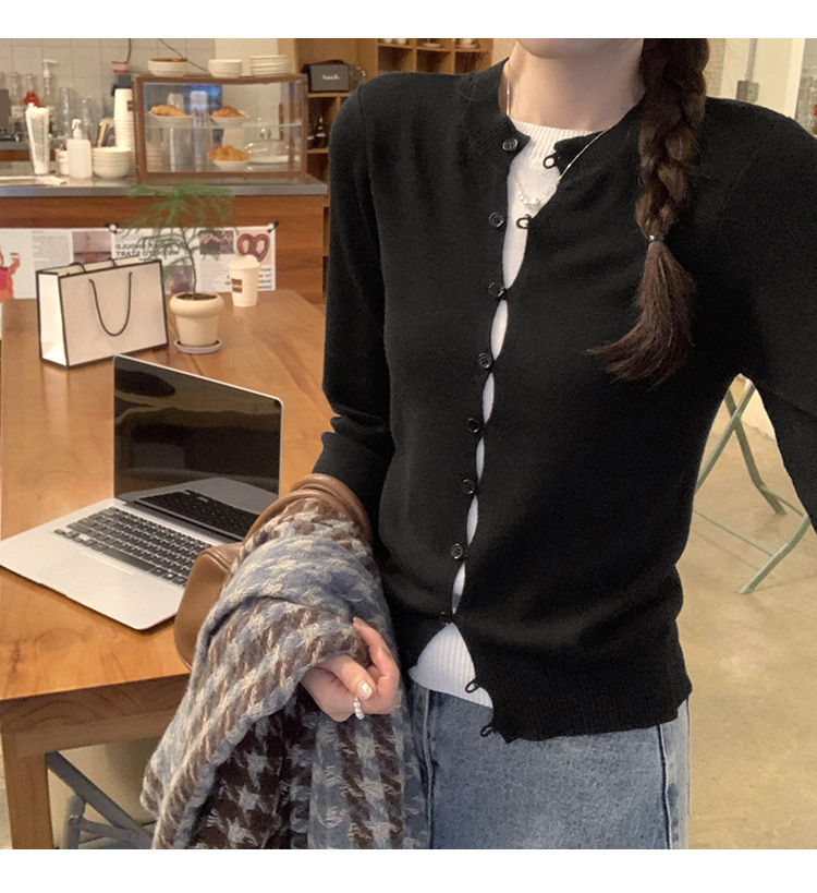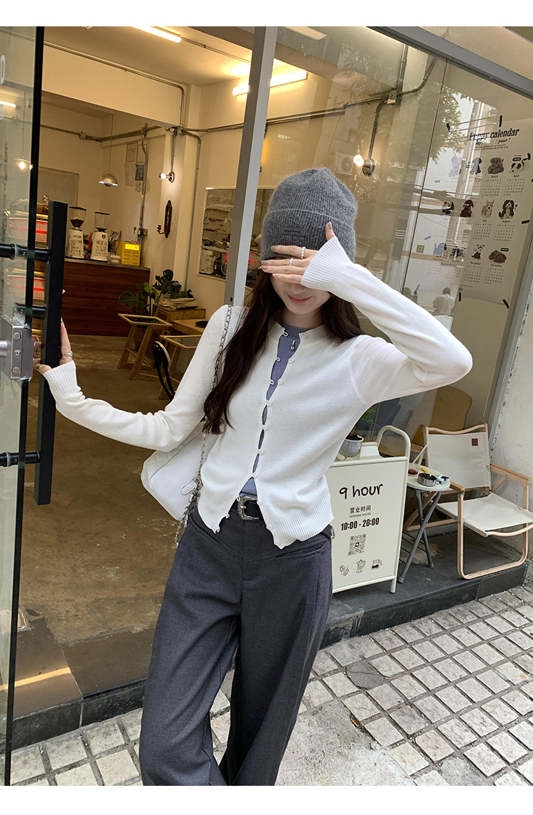 유럽의 세련된 긴 소매 니트 카디건 재킷 여성의 2024 년 새로운 가을과 겨울 프랑스 독특한 우아한 슬림 탑