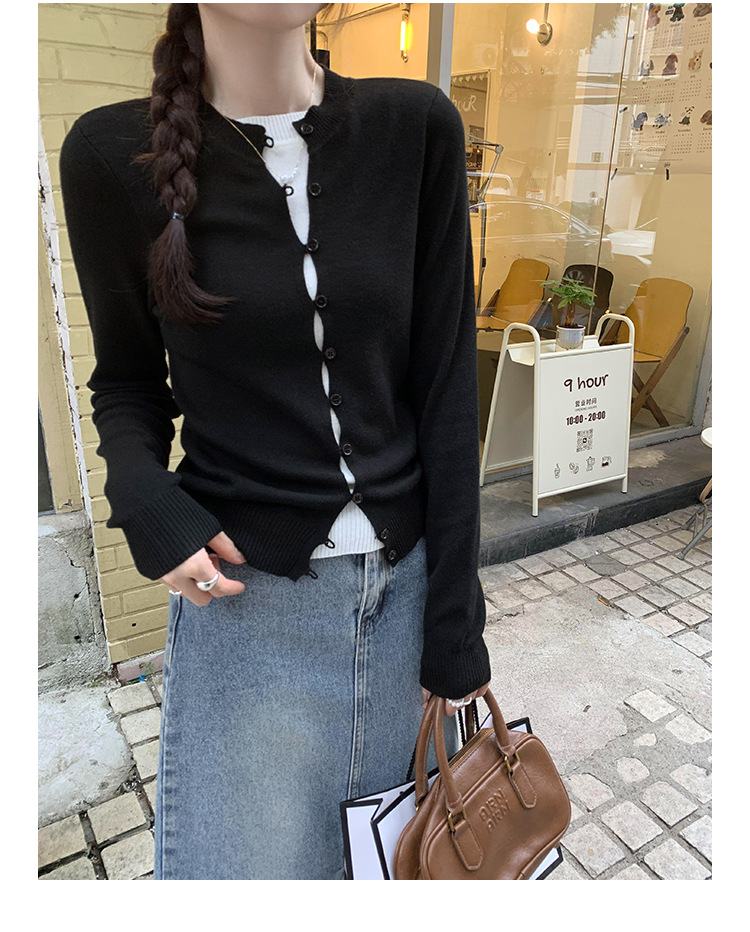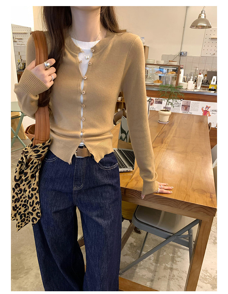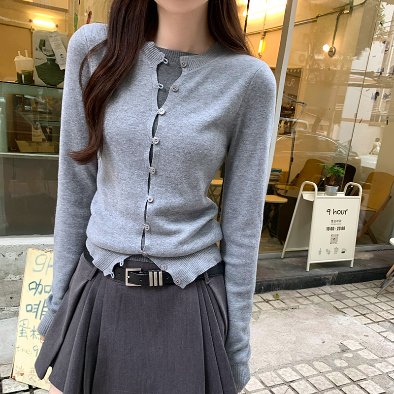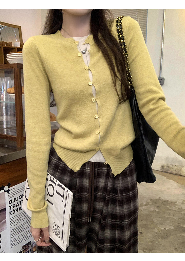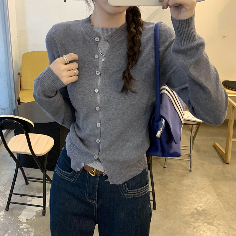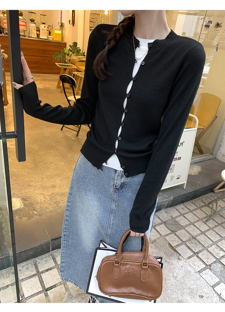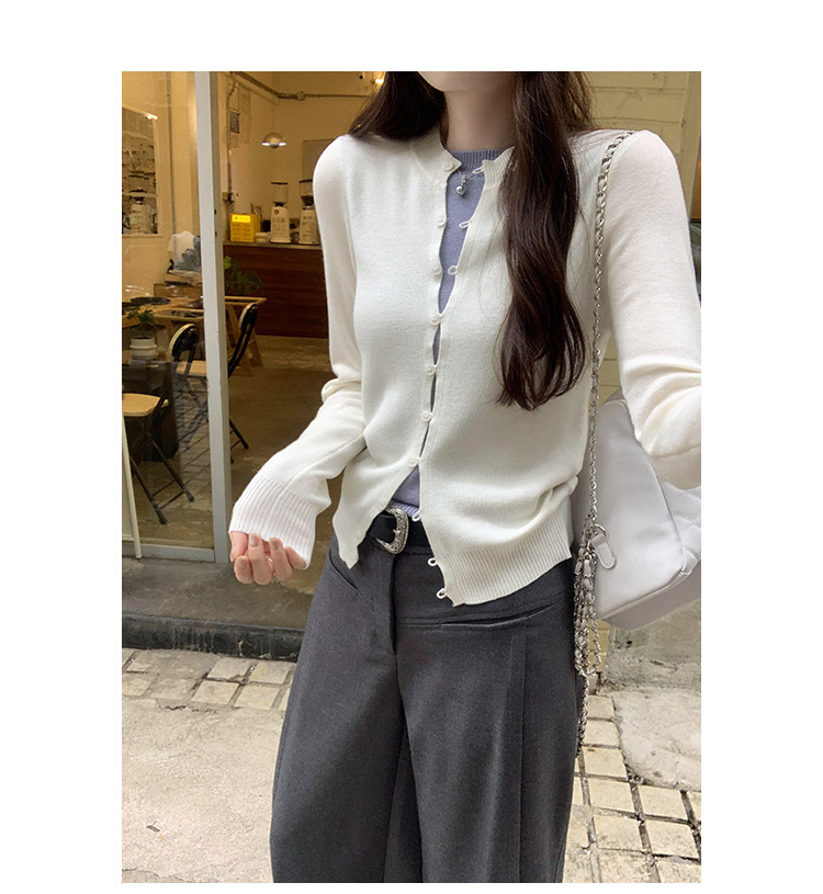 유럽의 세련된 긴 소매 니트 카디건 재킷 여성의 2024 년 새로운 가을과 겨울 프랑스 독특한 우아한 슬림 탑