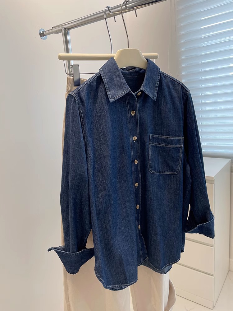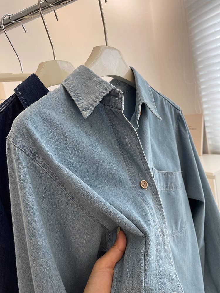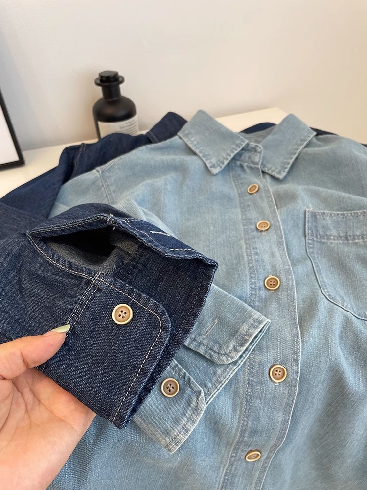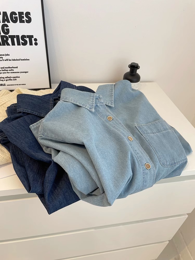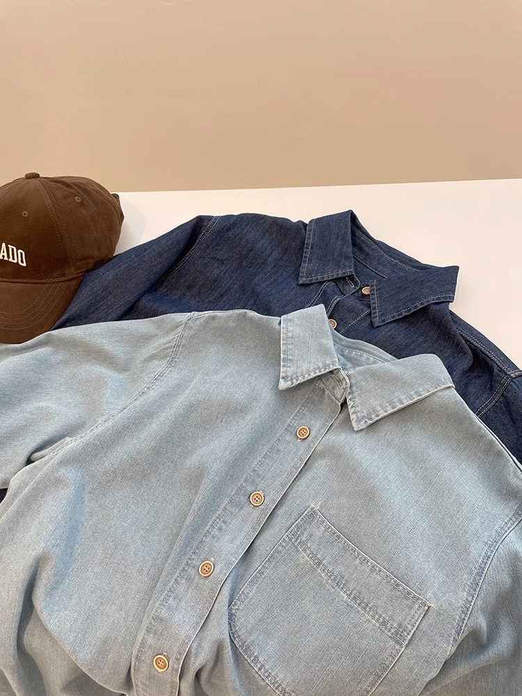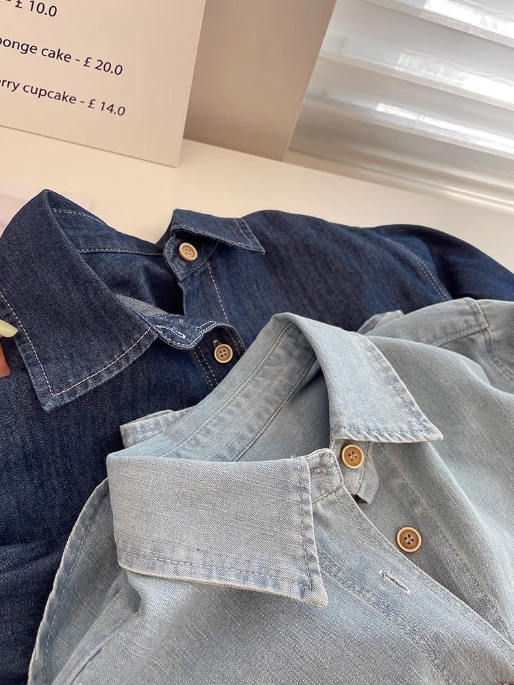 深浅两色牛仔衬衫女!秋冬复古百搭显瘦叠穿内搭长袖衬衣休闲外套