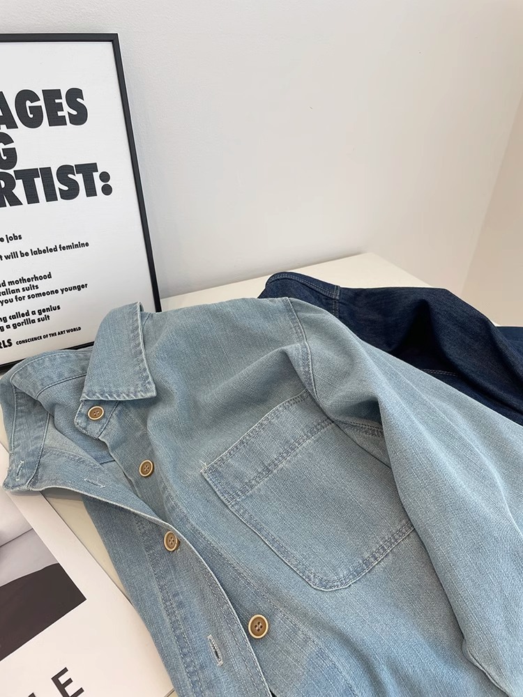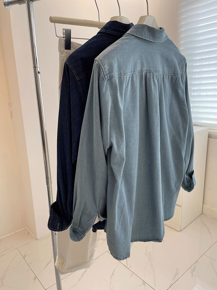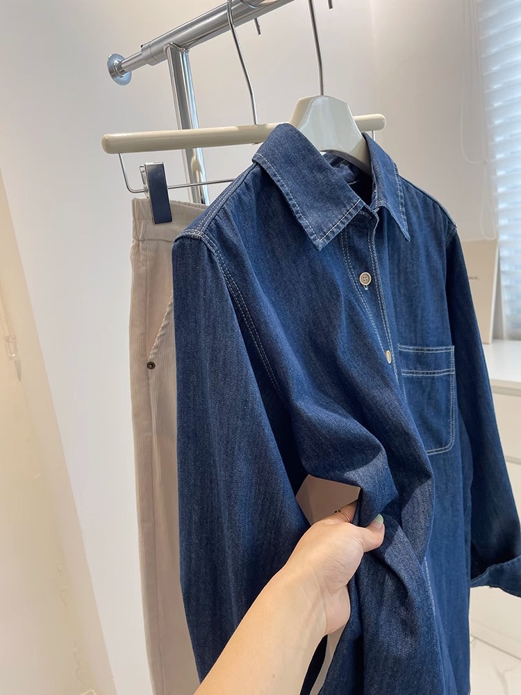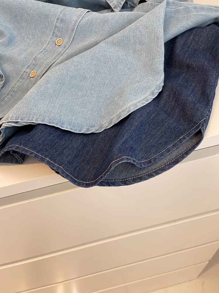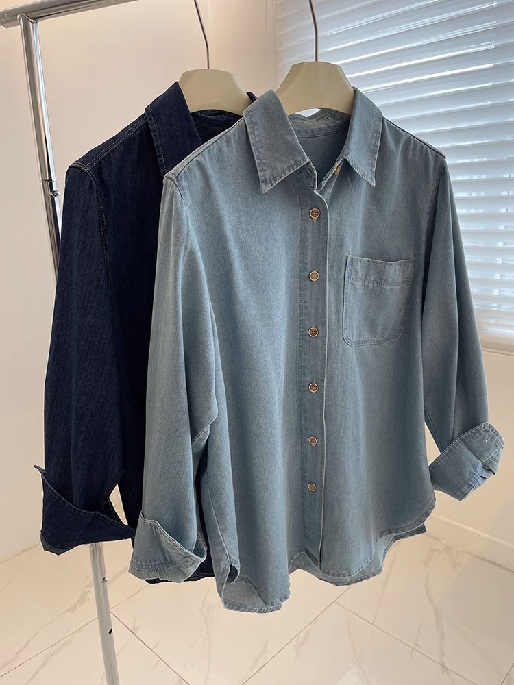 深浅两色牛仔衬衫女!秋冬复古百搭显瘦叠穿内搭长袖衬衣休闲外套