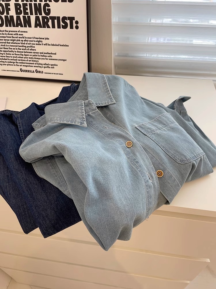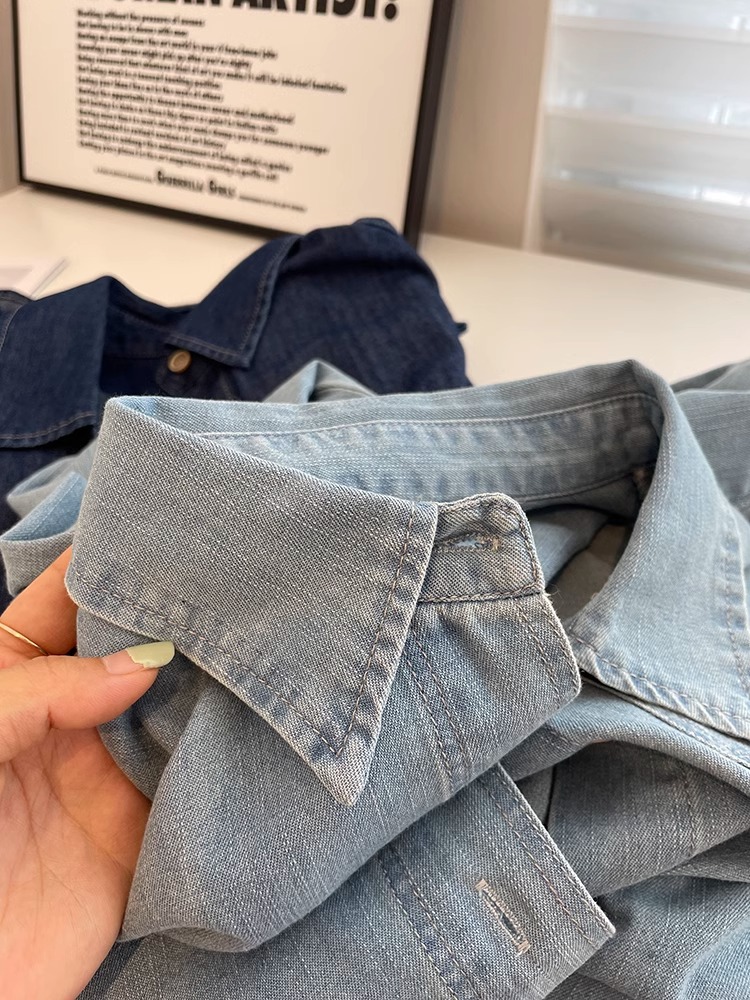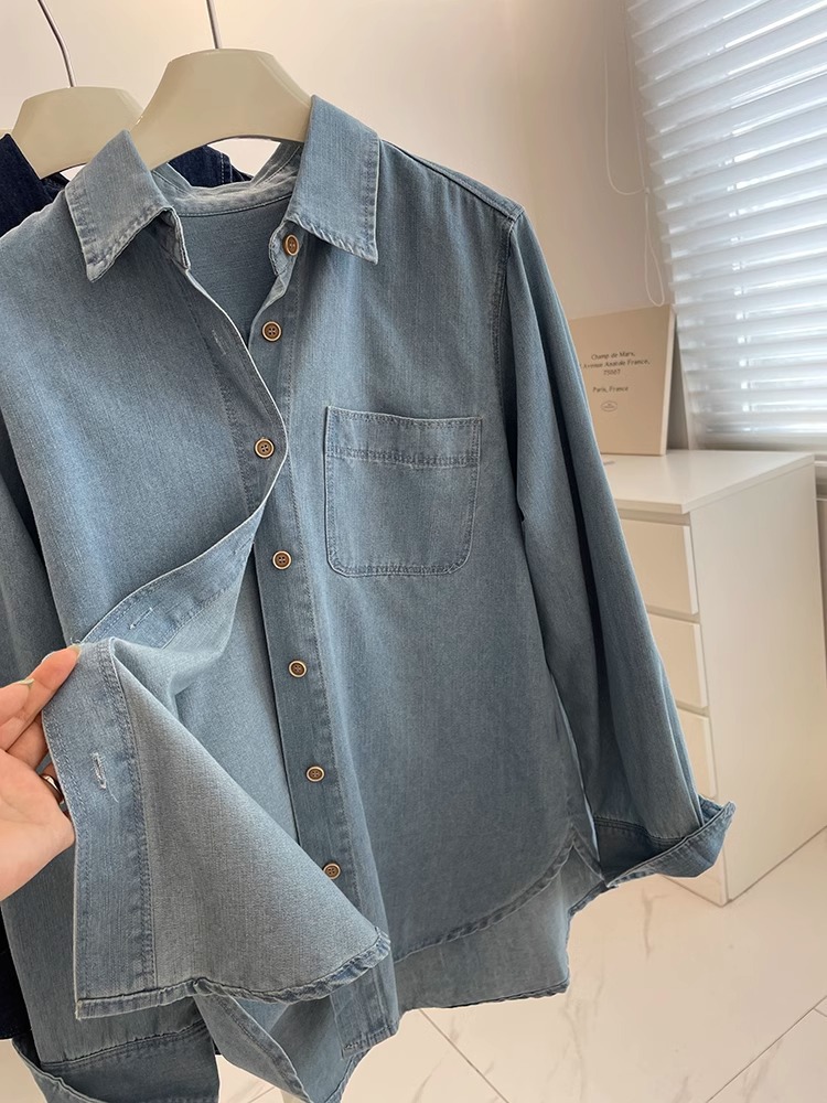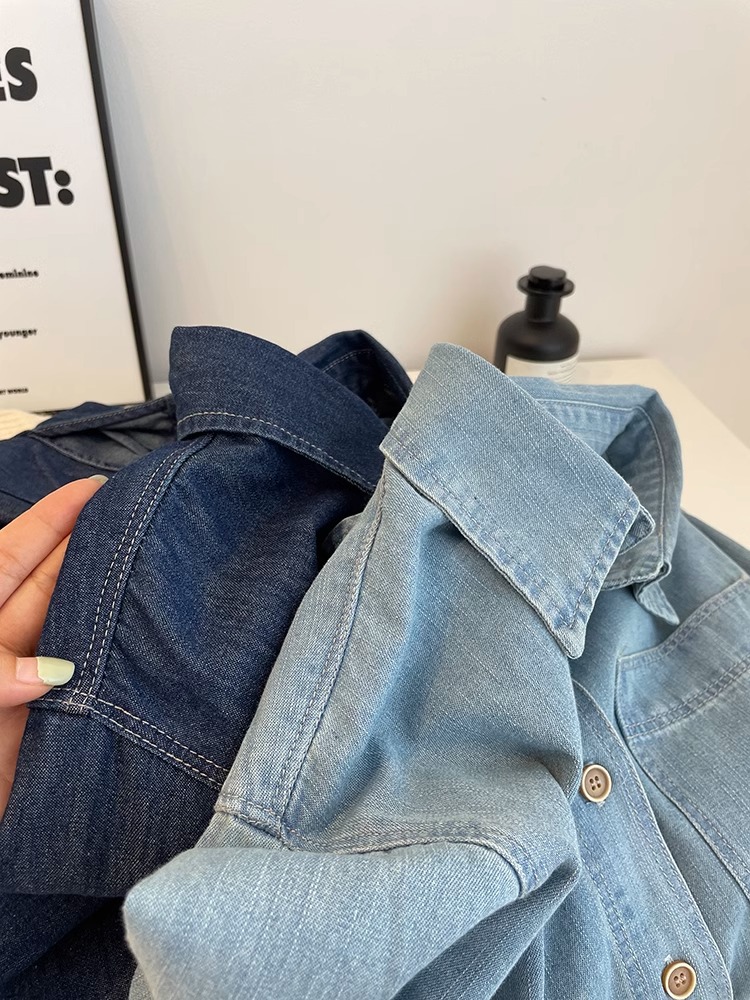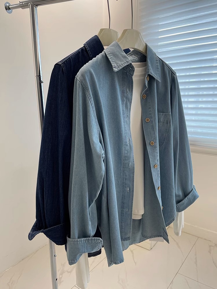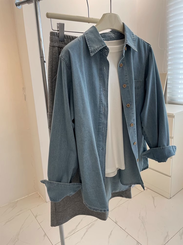 深浅两色牛仔衬衫女!秋冬复古百搭显瘦叠穿内搭长袖衬衣休闲外套
