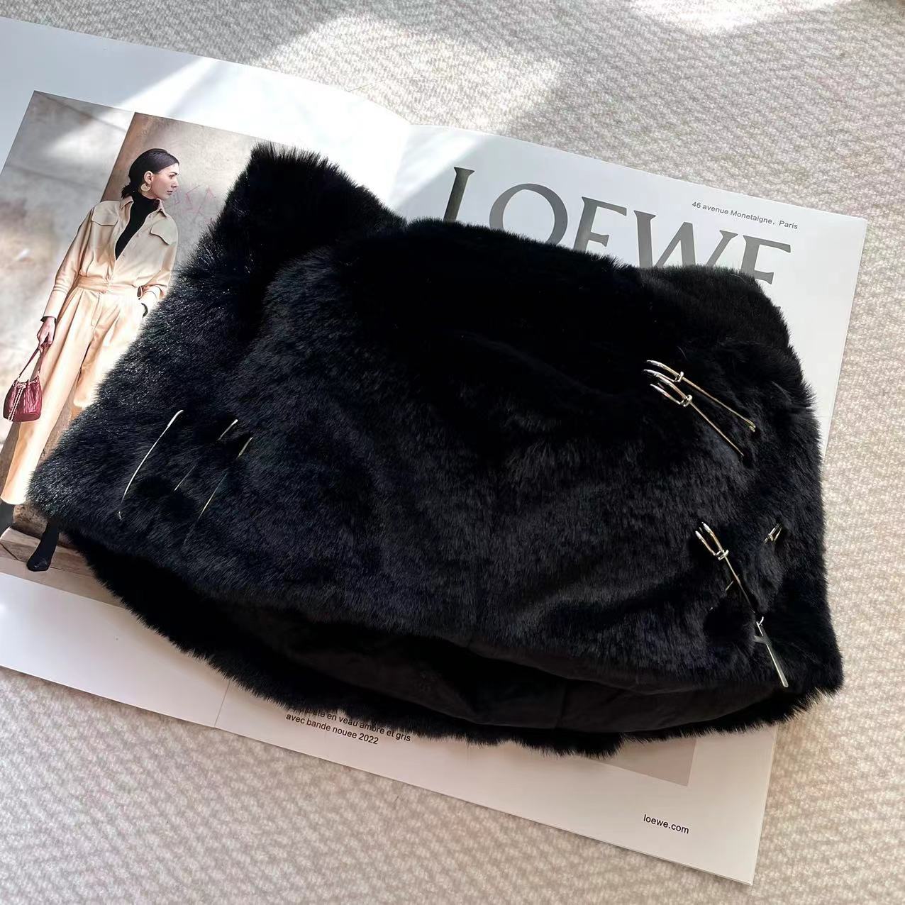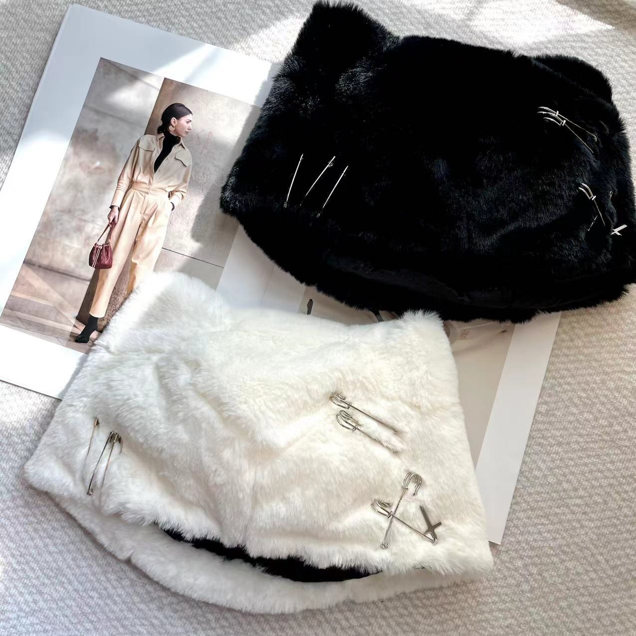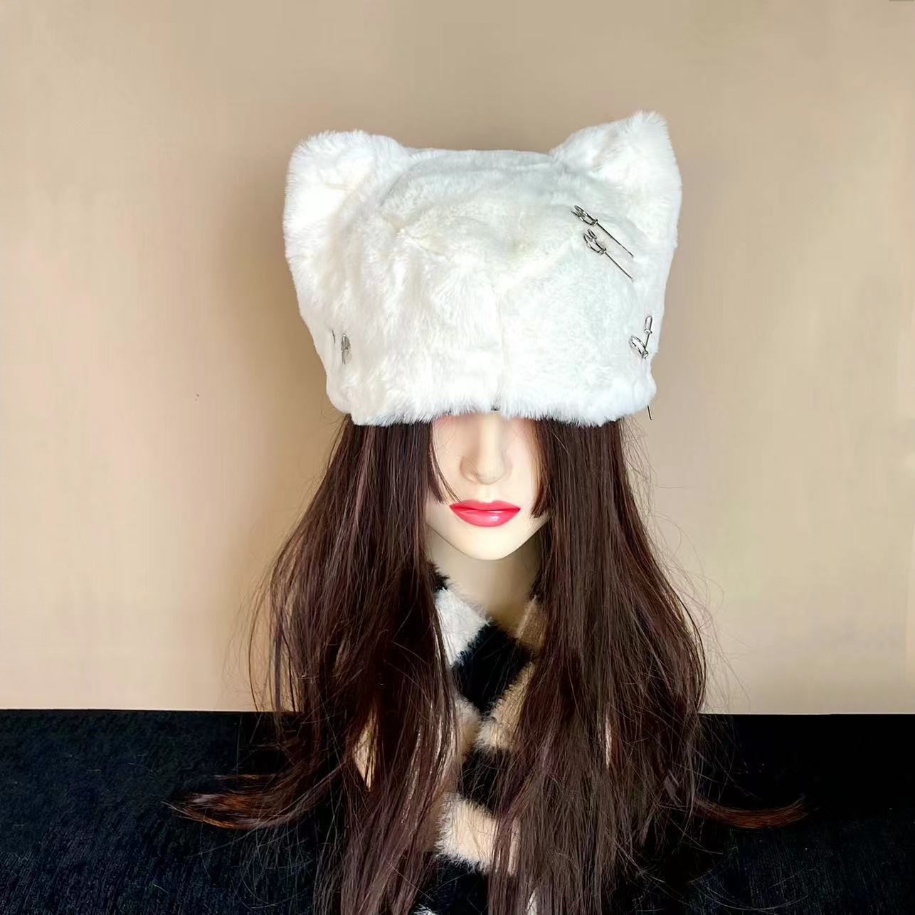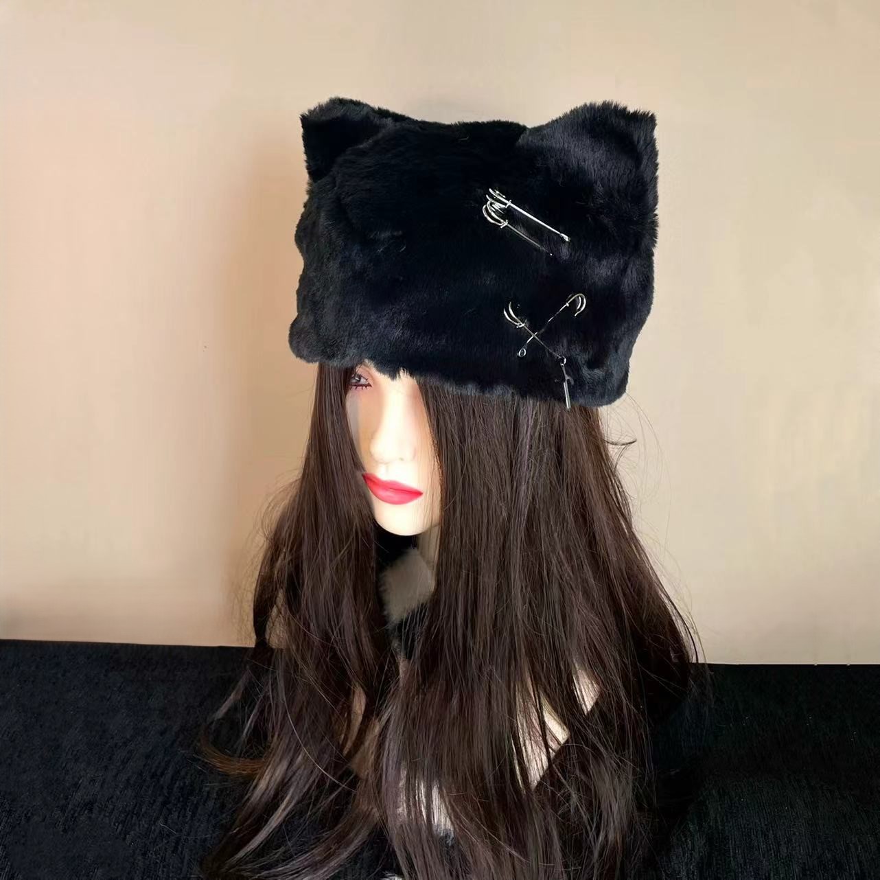 Yk2 플러시 고양이 귀 플러시 캡 크로스 핀 캡 모조 모피 겨울 따뜻한 어두운 하위 문화 유역 캡