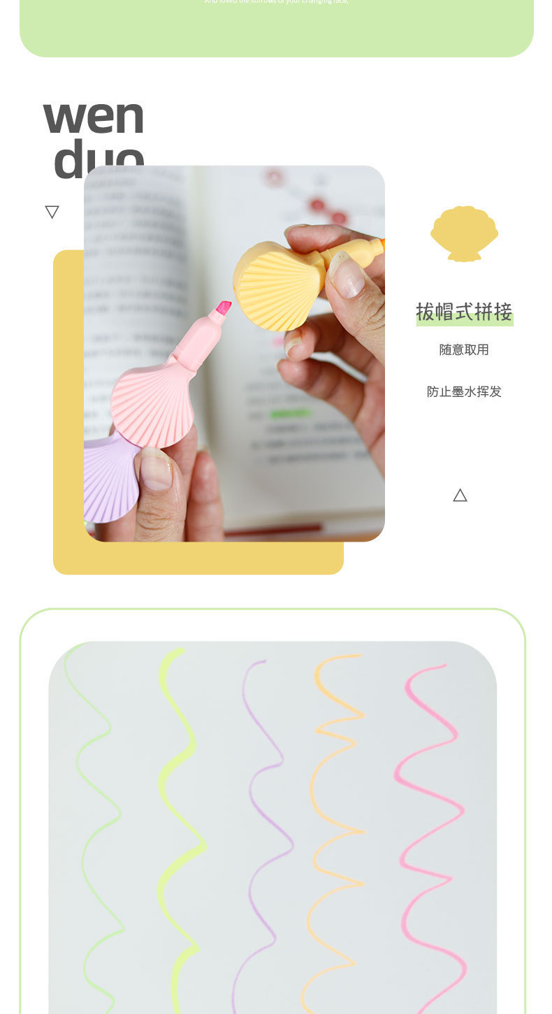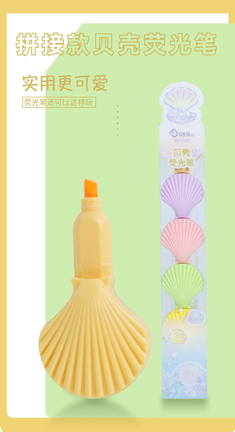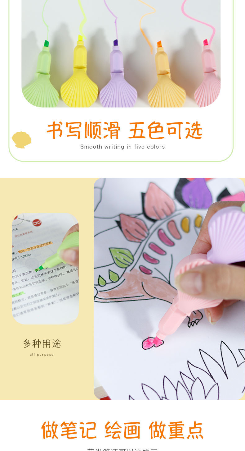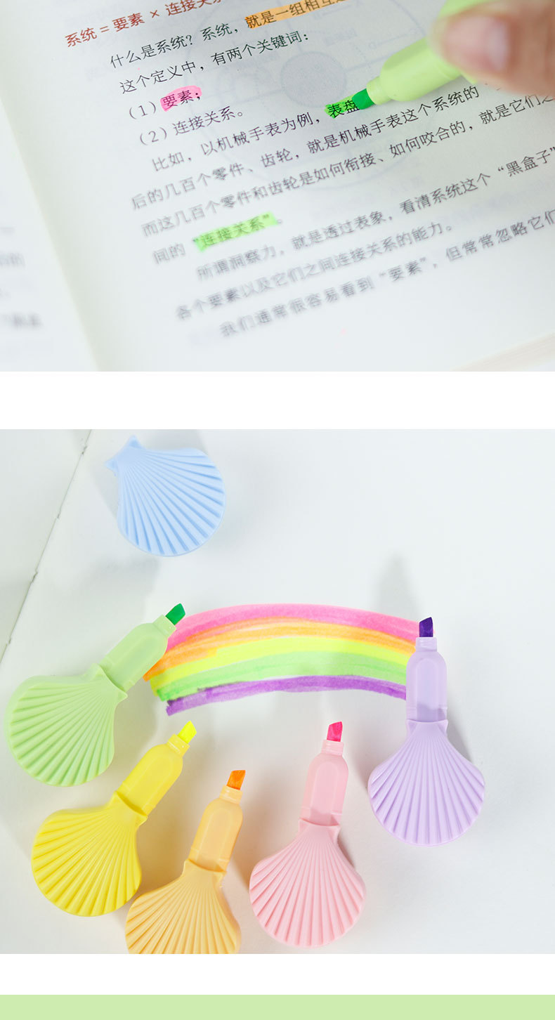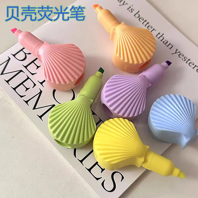 贝壳荧光笔盒装 学生划重点专用 标记笔 纯色 彩色 迷你便携