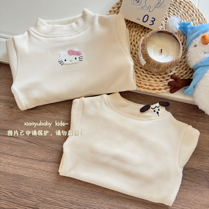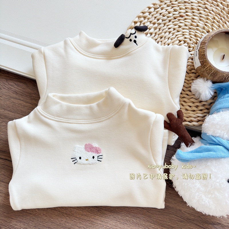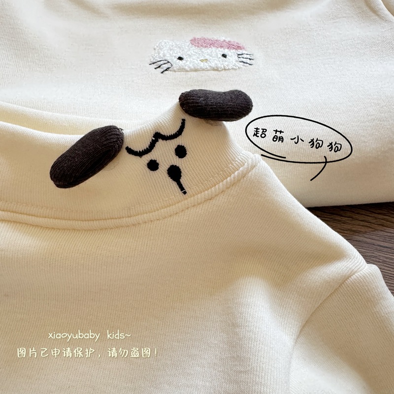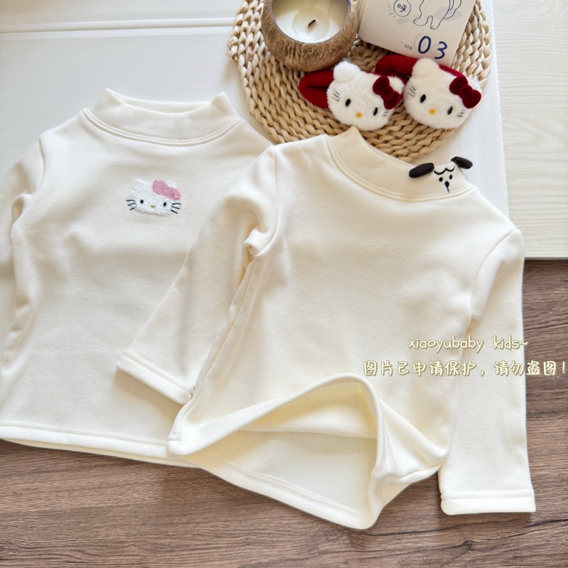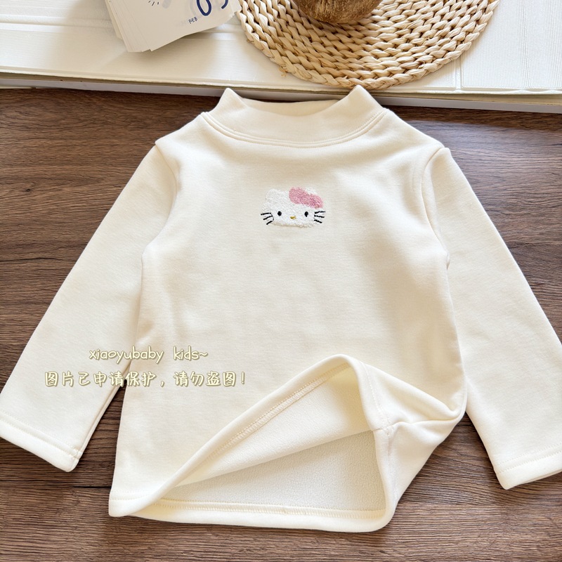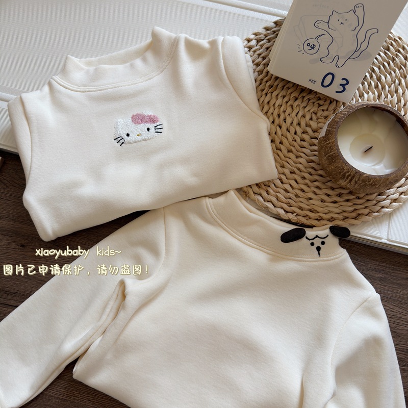 아기 소녀베이스 셔츠 반높이 칼라 가을과 겨울 기모 따뜻한 2024 한국식 올매치 어린이 긴팔 티셔츠