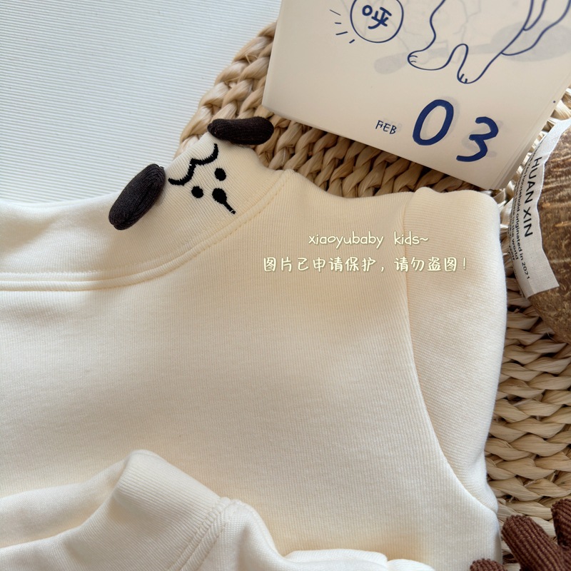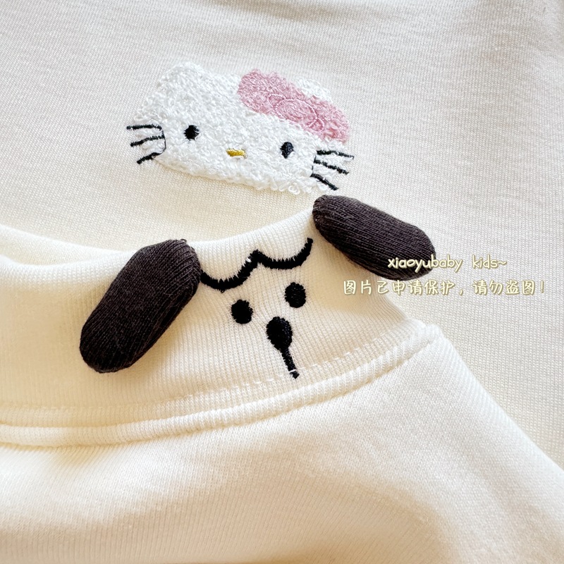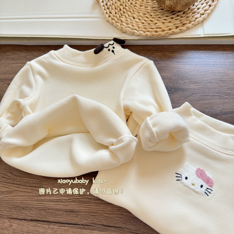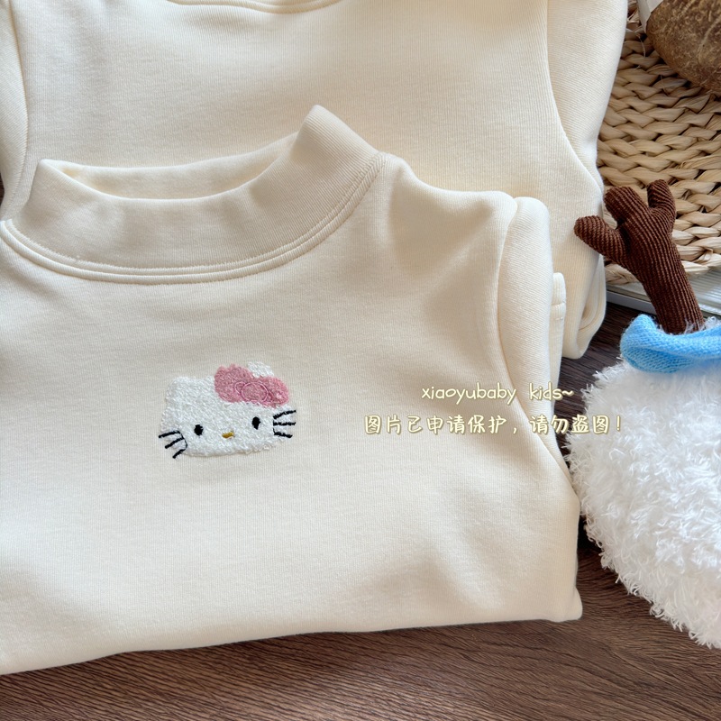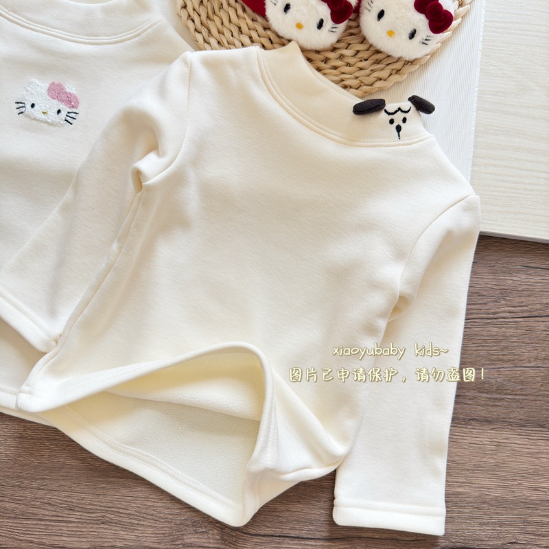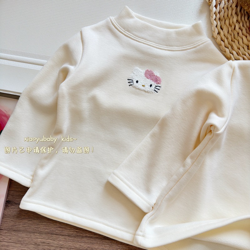 아기 소녀베이스 셔츠 반높이 칼라 가을과 겨울 기모 따뜻한 2024 한국식 올매치 어린이 긴팔 티셔츠