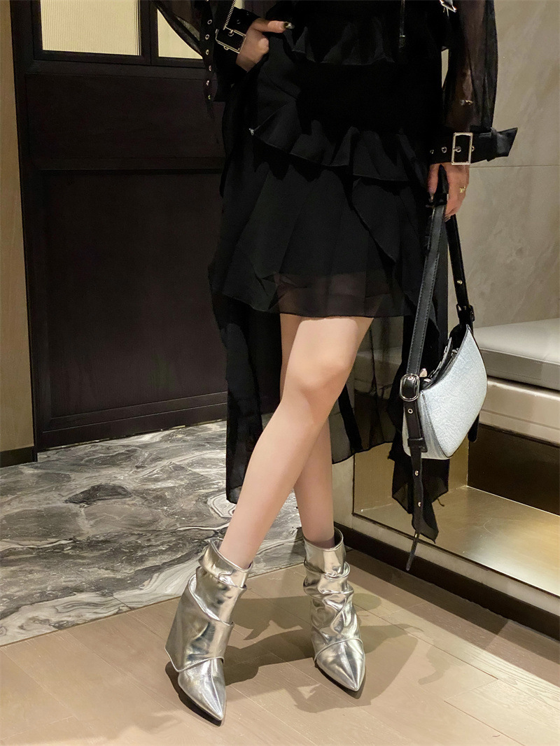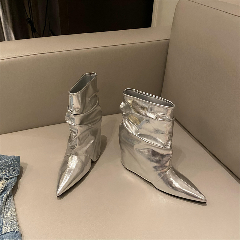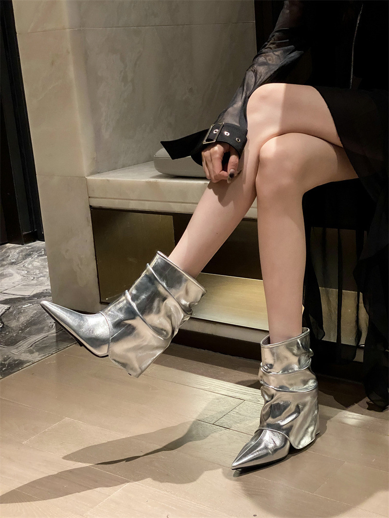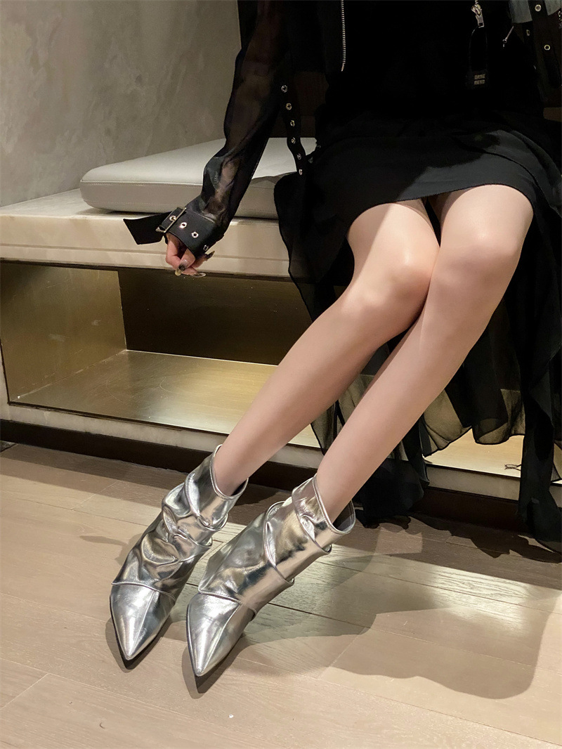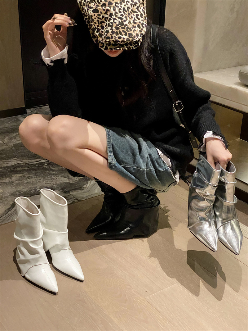 스파이스 걸스 실버 하이힐 부츠 2024 가을/겨울 새 기질 포인팅 부츠 작은 바지 짧은 부츠 여성스토어 가기