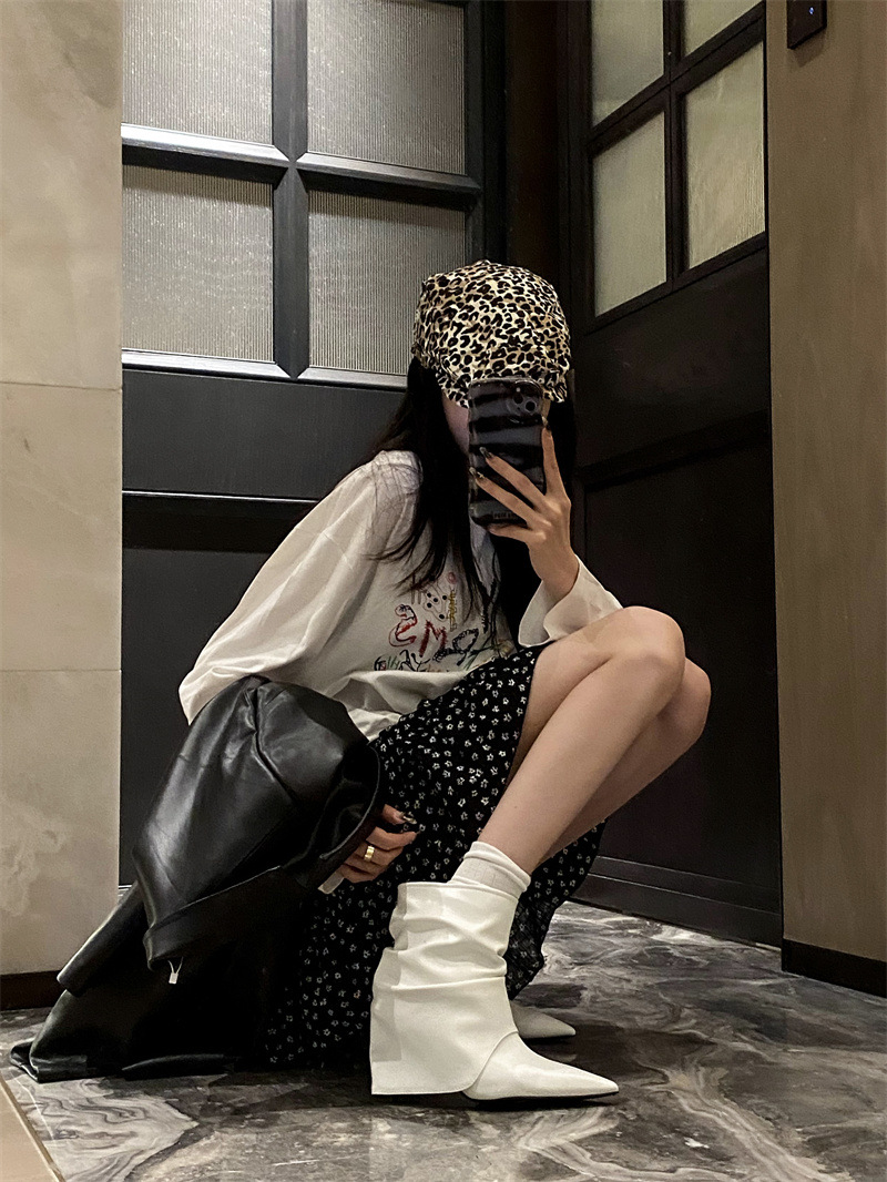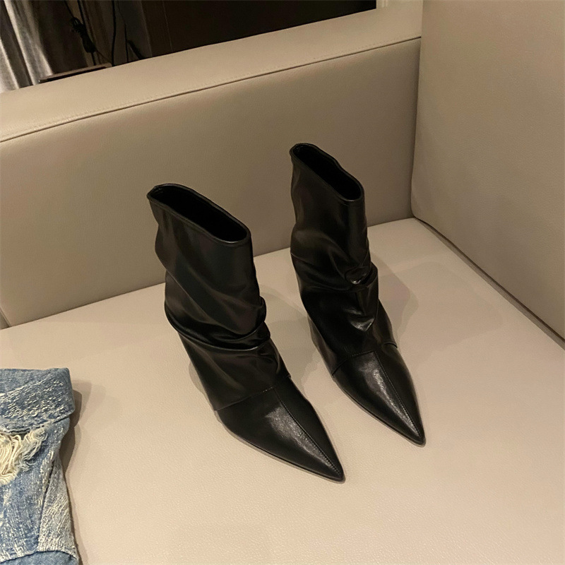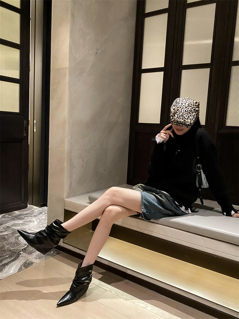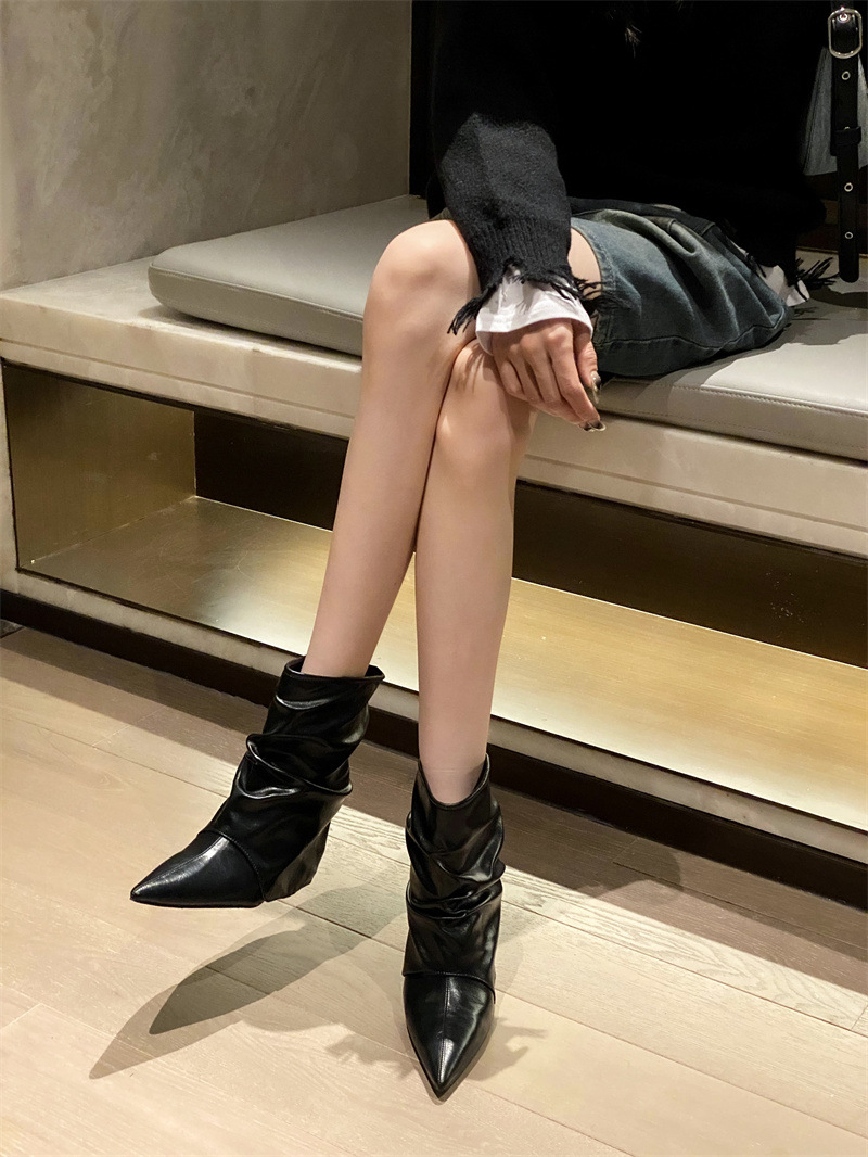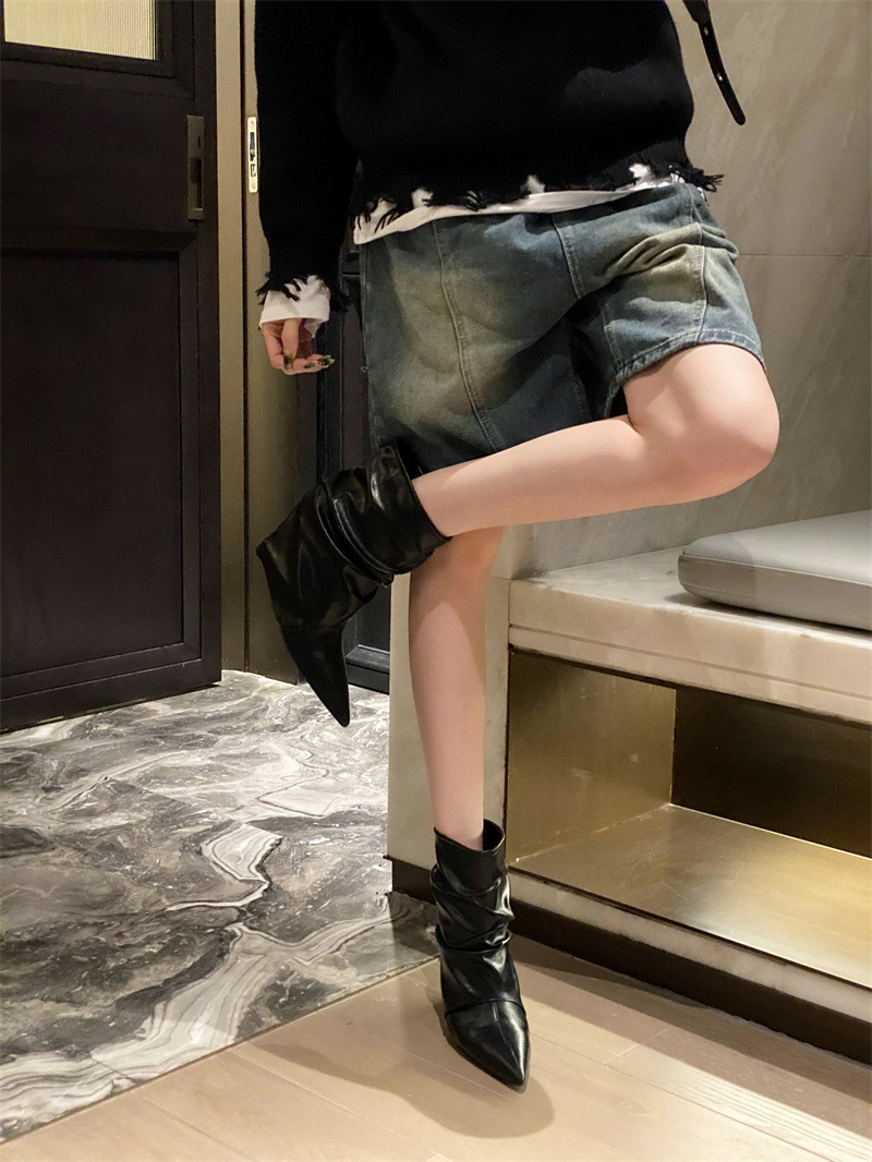 스파이스 걸스 실버 하이힐 부츠 2024 가을/겨울 새 기질 포인팅 부츠 작은 바지 짧은 부츠 여성스토어 가기