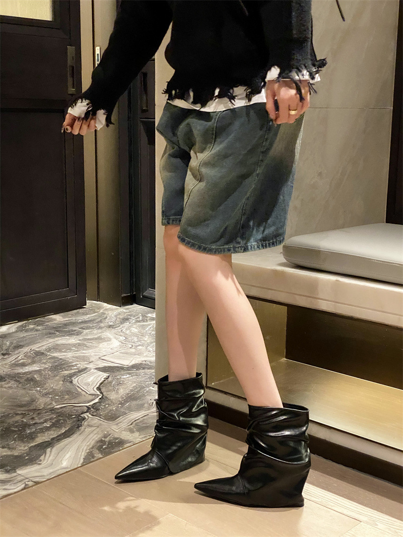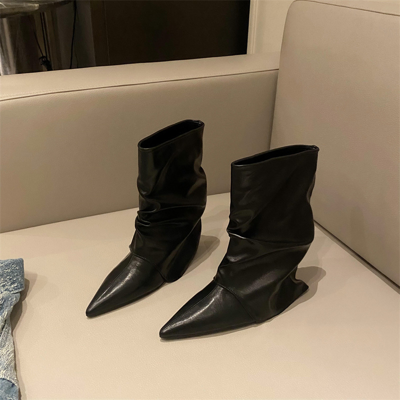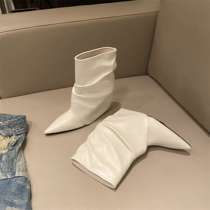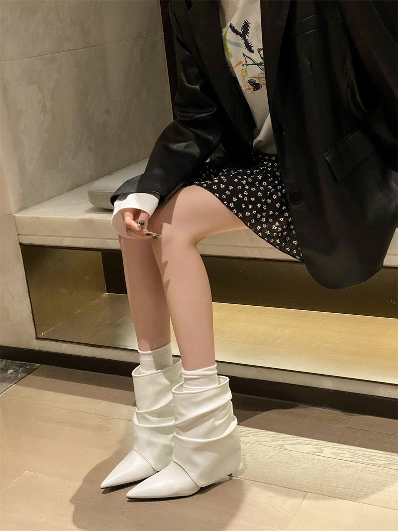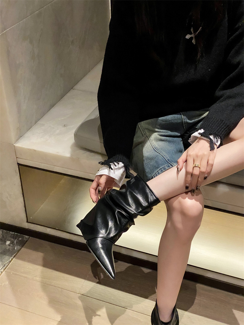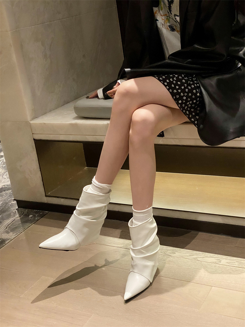스파이스 걸스 실버 하이힐 부츠 2024 가을/겨울 새 기질 포인팅 부츠 작은 바지 짧은 부츠 여성스토어 가기