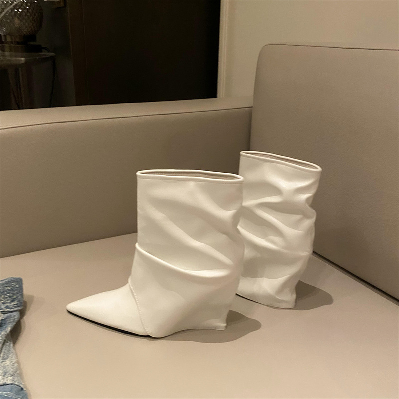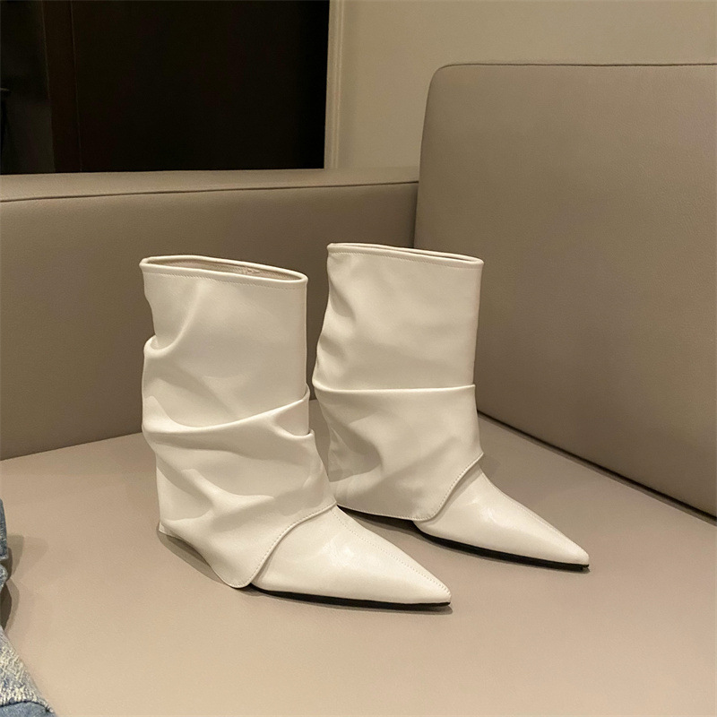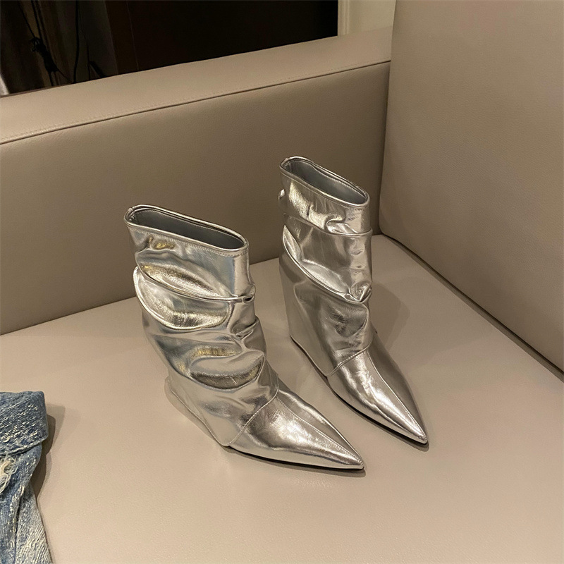 스파이스 걸스 실버 하이힐 부츠 2024 가을/겨울 새 기질 포인팅 부츠 작은 바지 짧은 부츠 여성