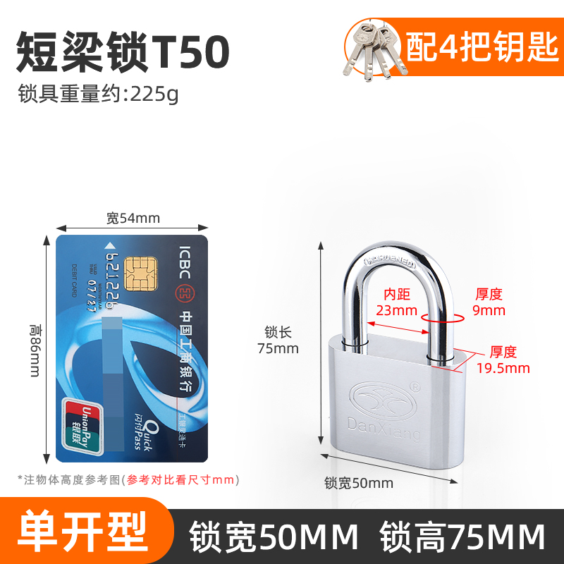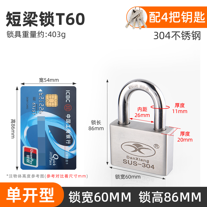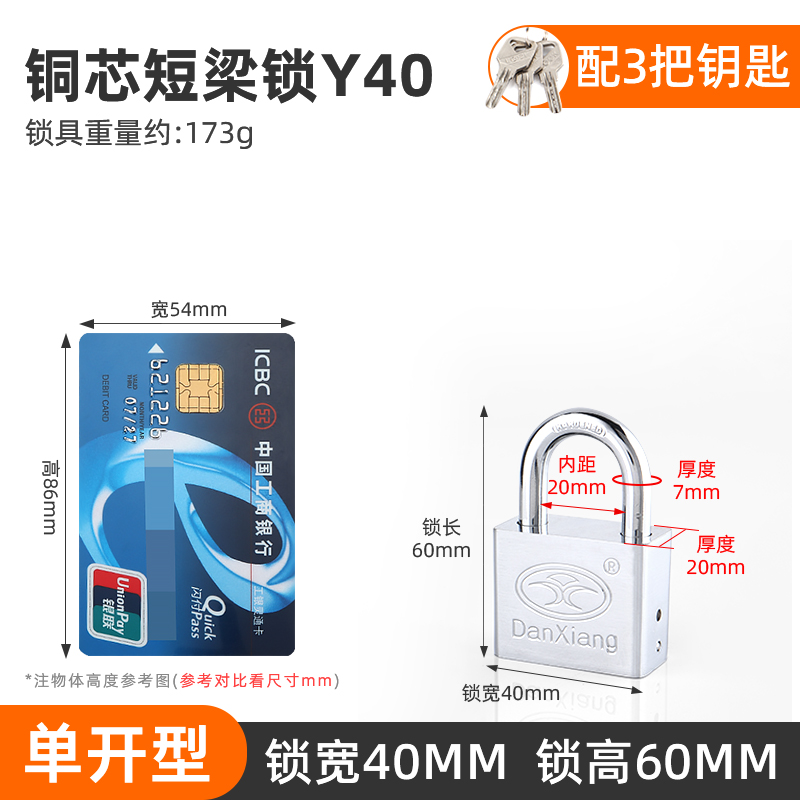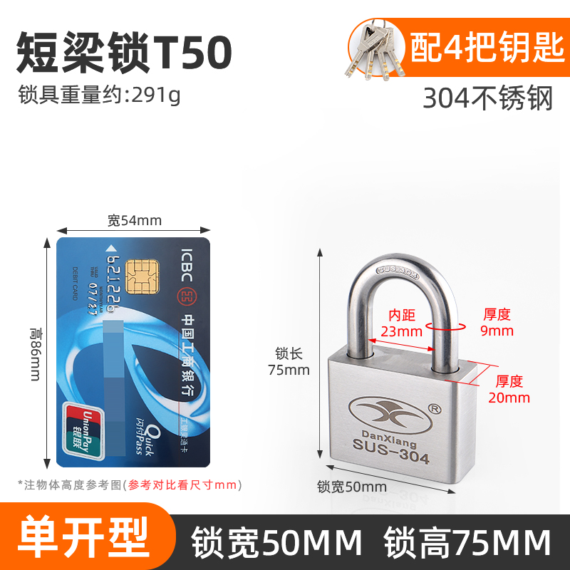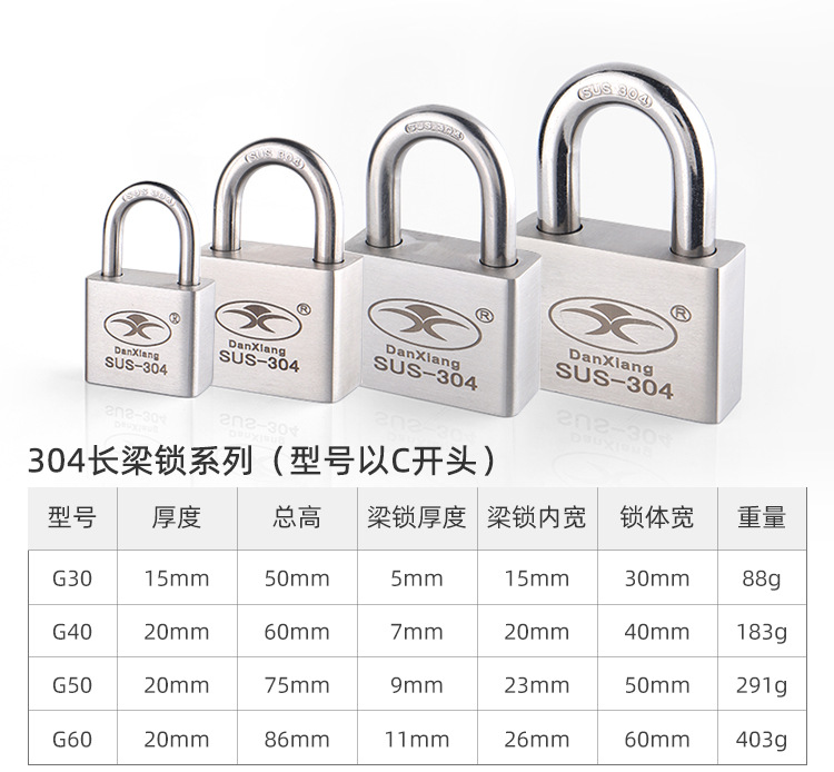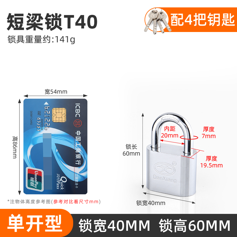 • 304 스테인레스 스틸 - 짧은 빔 40mm [단일 개구부] 키 3개