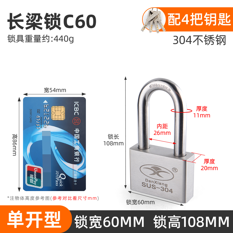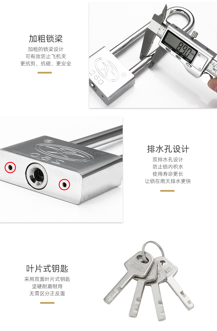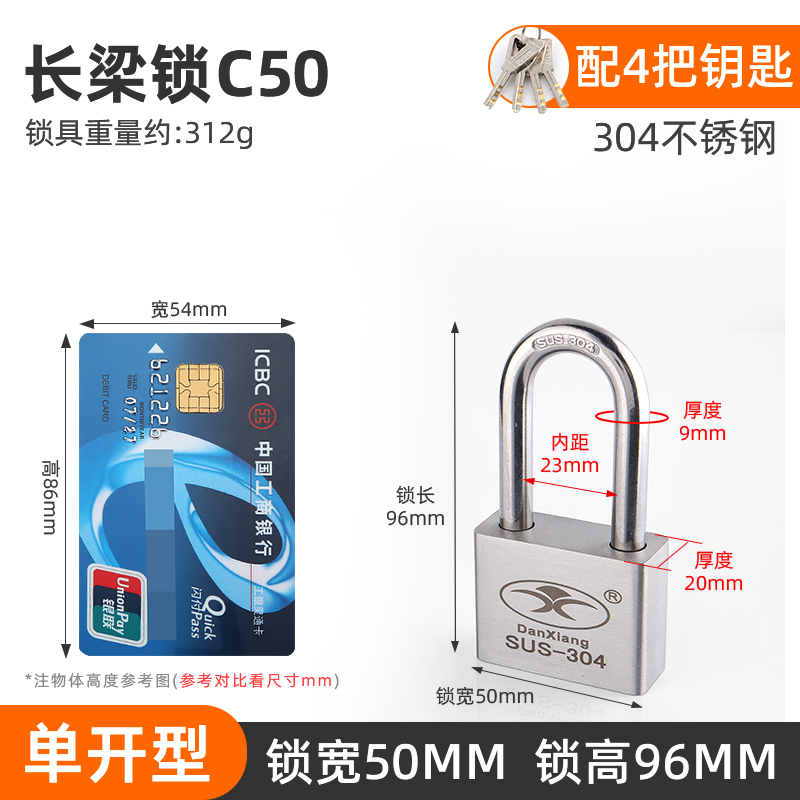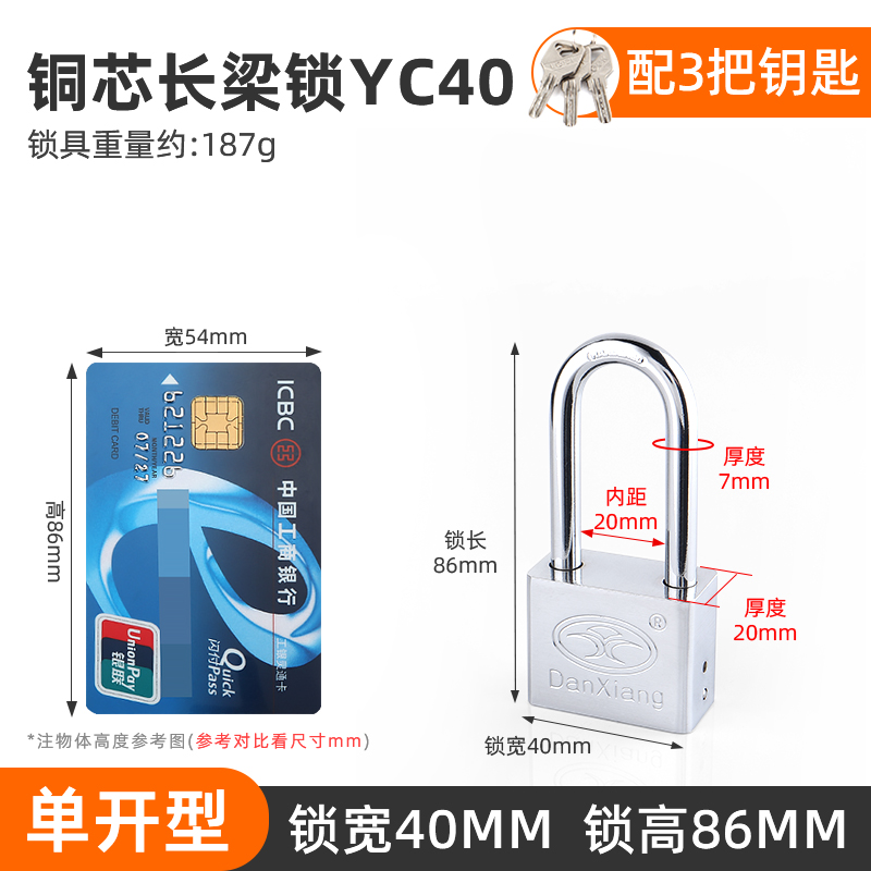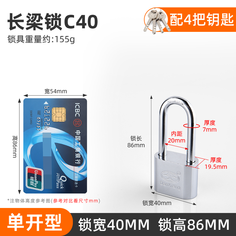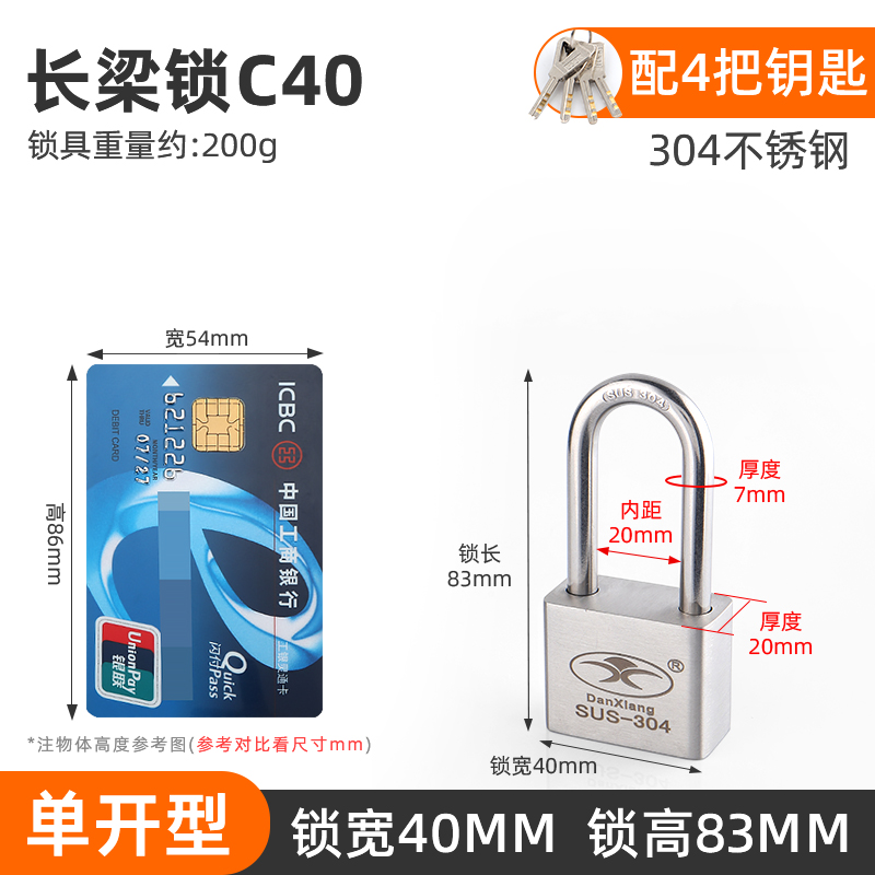 • 304 스테인레스 스틸 - 장빔 40mm [단일 개구부] 키 3개