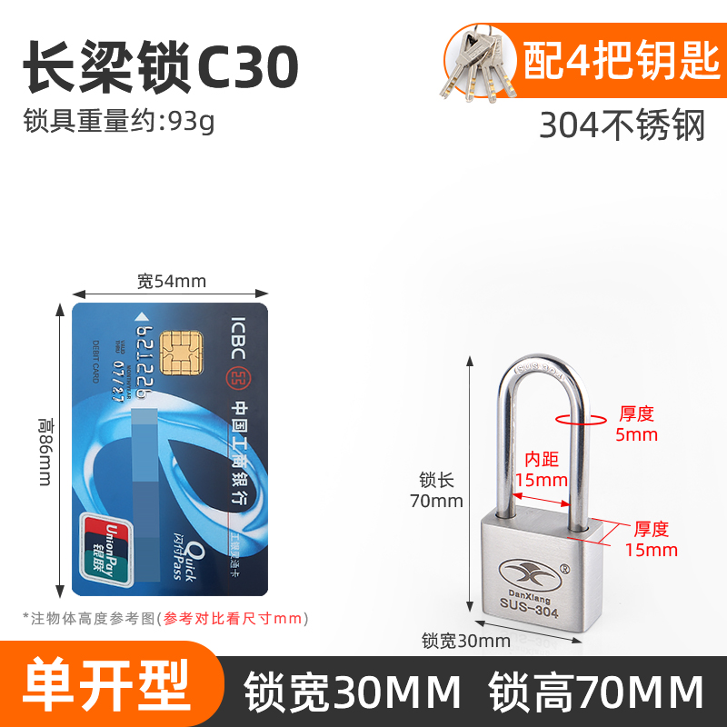 • 304 스테인레스 스틸 - 장빔 30mm [단일 개구부] 키 3개
