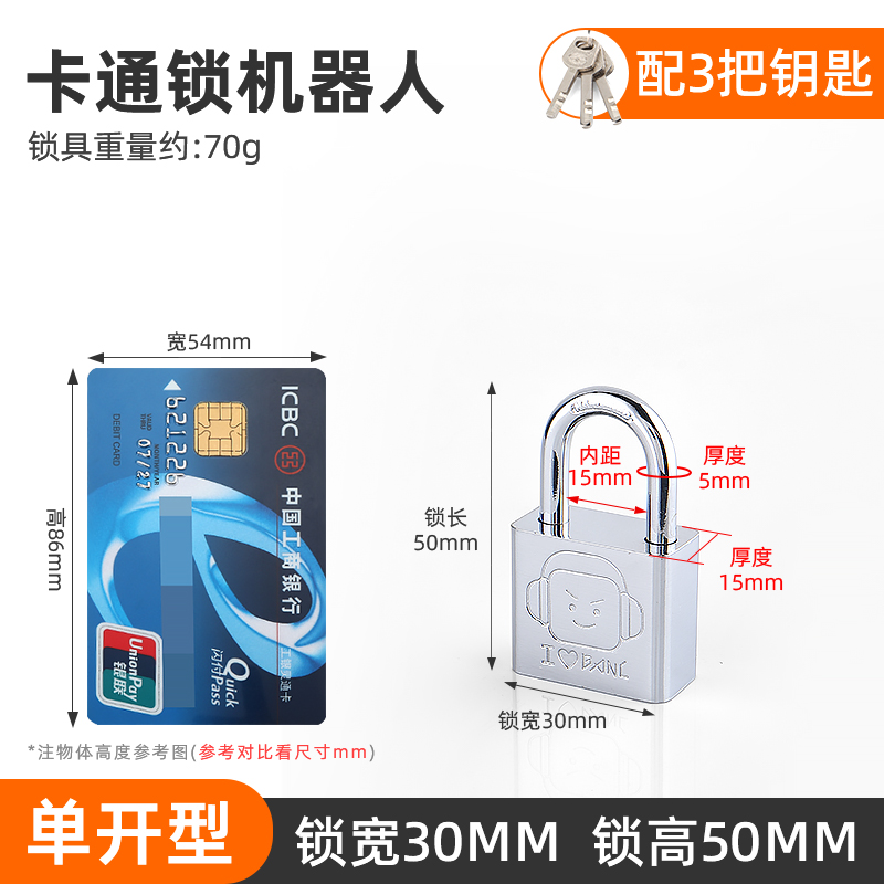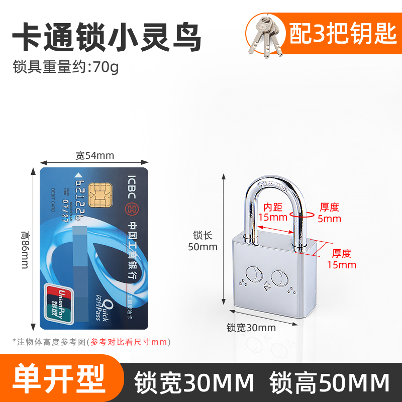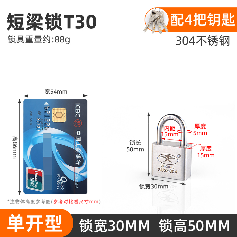• 304 스테인레스 스틸 - 짧은 빔 30mm [단일 개구부] 키 3개
