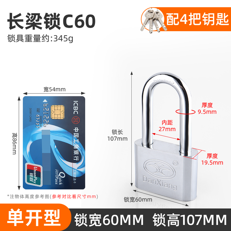 • 확장 자물쇠 60mm [단일 개구부] 키 3개 포함