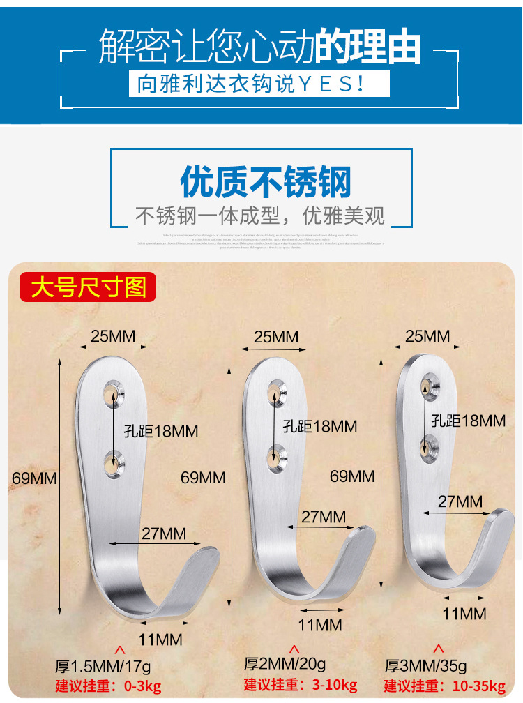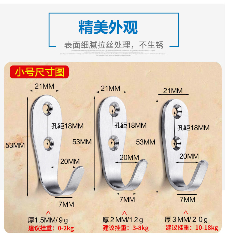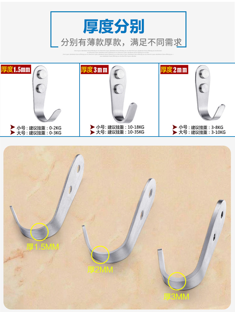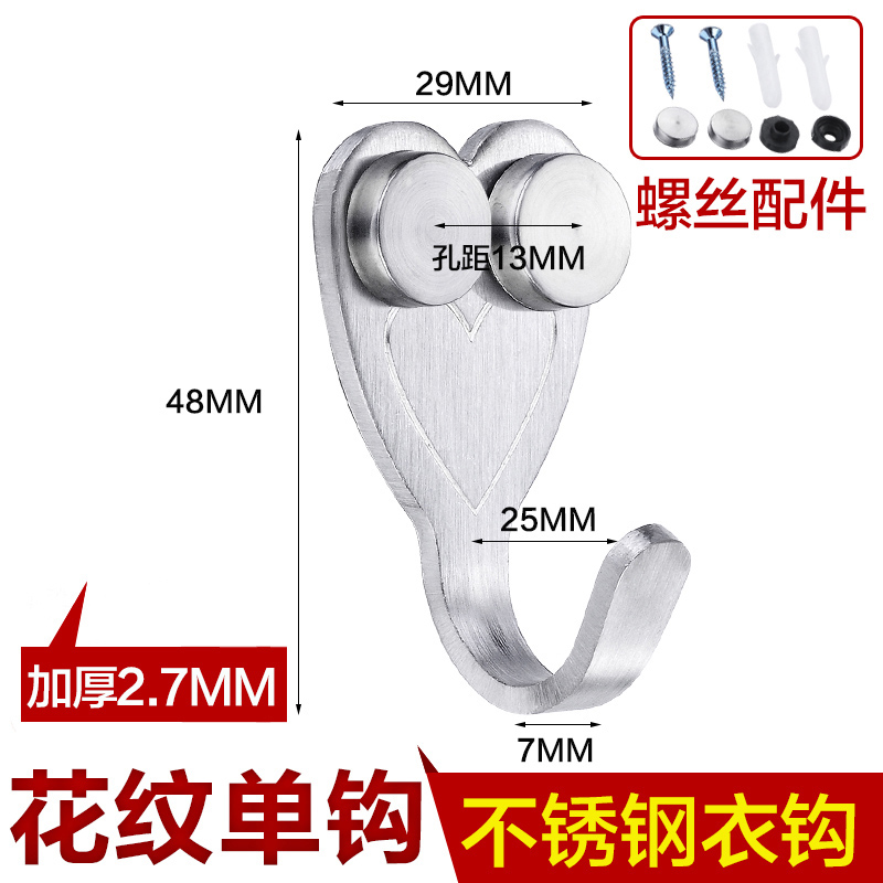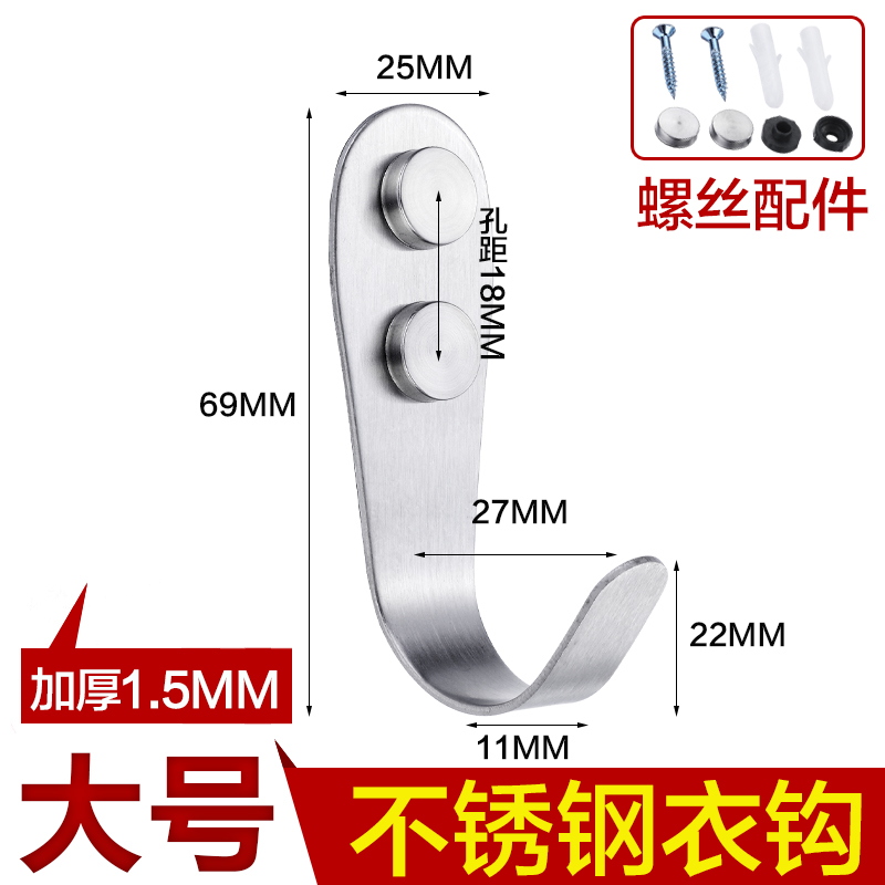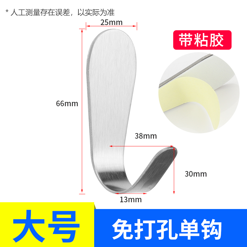 스테인레스 스틸 구멍이없는 후크 단일 옷장 후크 액세서리 욕실 벽 구멍 하드웨어 후크