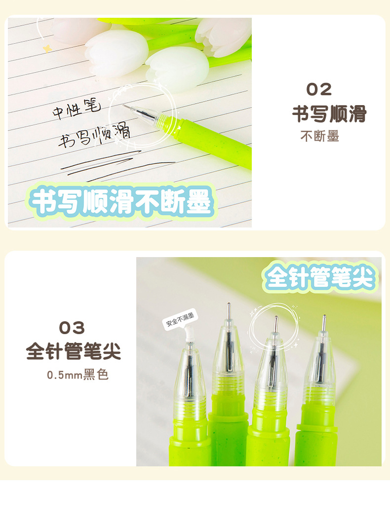 2024 새로운 창조적 인 밝은 색 튤립 젤 펜 작은 신선한 귀여운 어린이 학습 빠른 건조 펜 도매