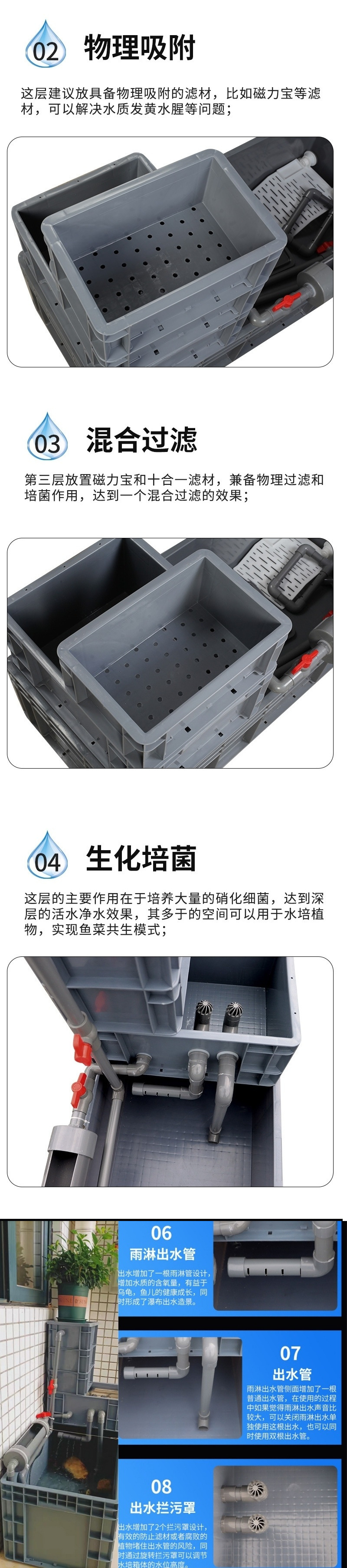 • 박스 본체와 필터 재료, 풀러가 있는 펌프 테라스