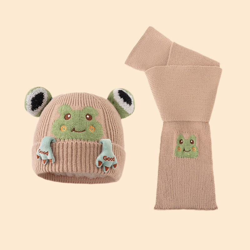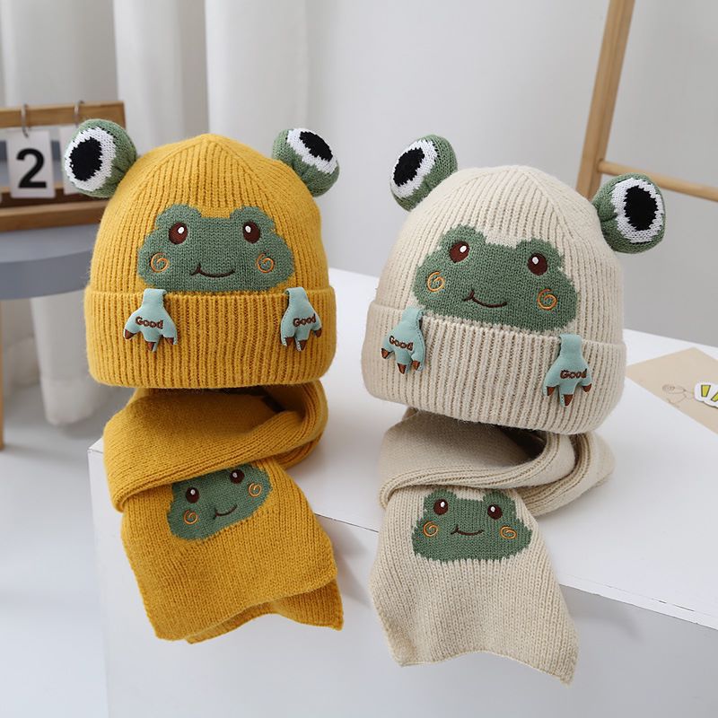 어린이 가을과 겨울 울 모자 귀여운 개구리 기모 따뜻한 바람 보호 소년 소녀 아기 귀 보호 스카프 모자