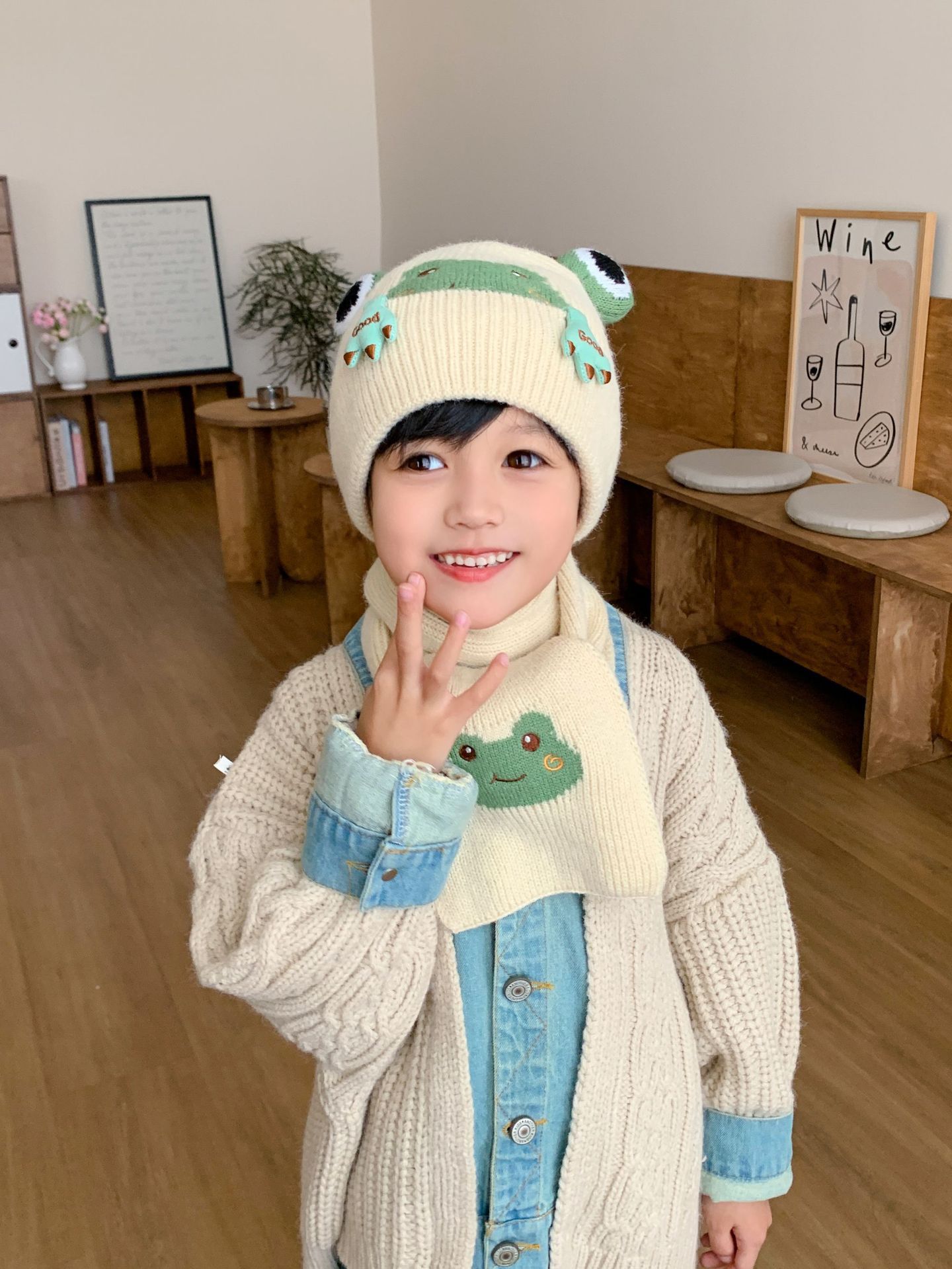 어린이 가을과 겨울 울 모자 귀여운 개구리 기모 따뜻한 바람 보호 소년 소녀 아기 귀 보호 스카프 모자스토어 가기